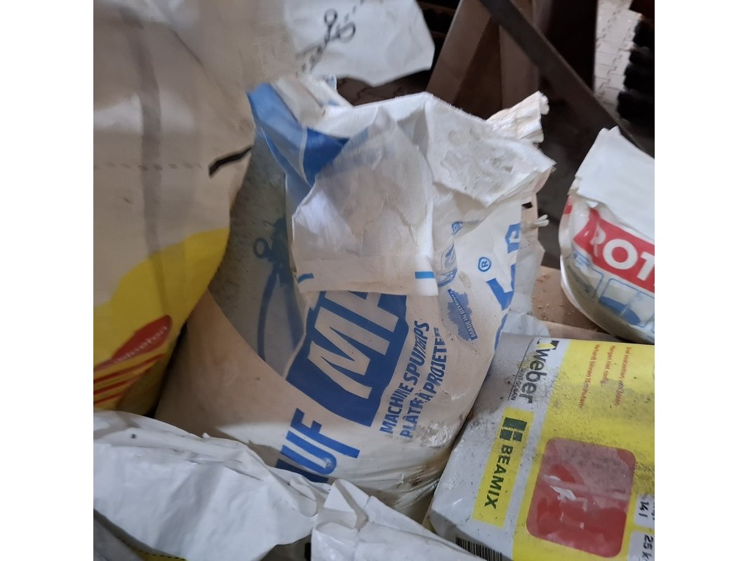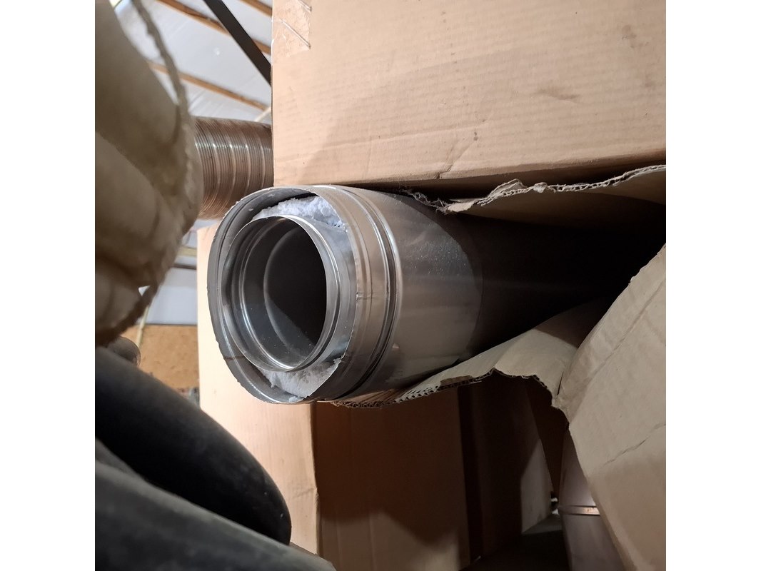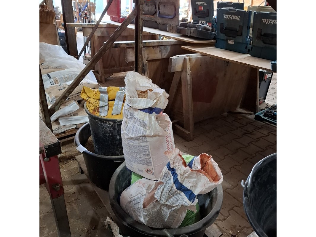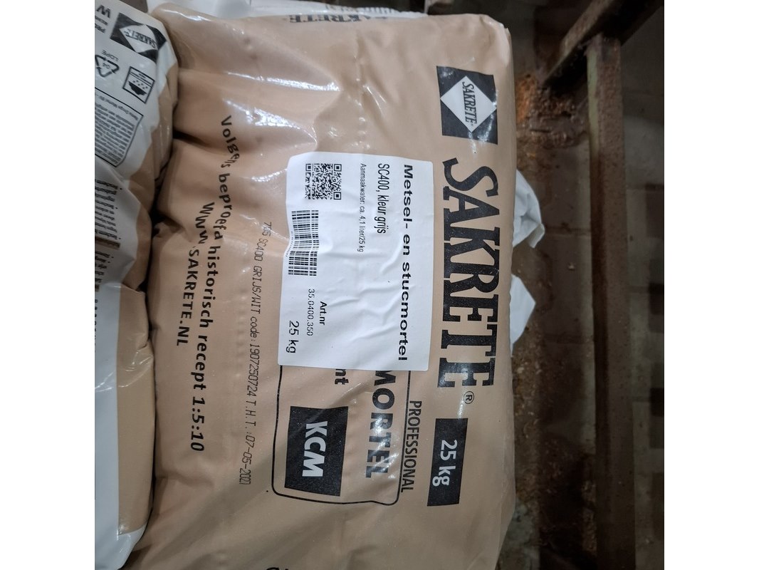 Product: Palletstelling met inhoud Afmeting: hxbxd ca. 300x560x90cm Specificaties: inhoud bestaande uit o.a. : dubbelwandig rookkanaal toebehoren, diverse luchtslang, ca. 16x zak 25 kilo kalkmortel CS400 grijs, voegmortel, transportbak, snelbeton, roodband, stenenzaag (werking onbekend), mantelbuis, infrarood kachel etc.