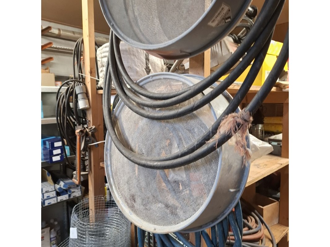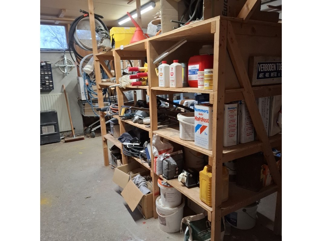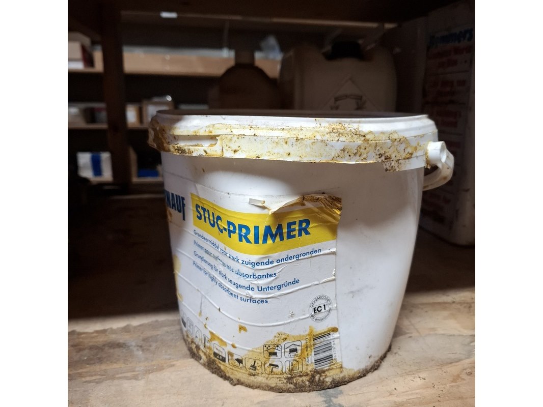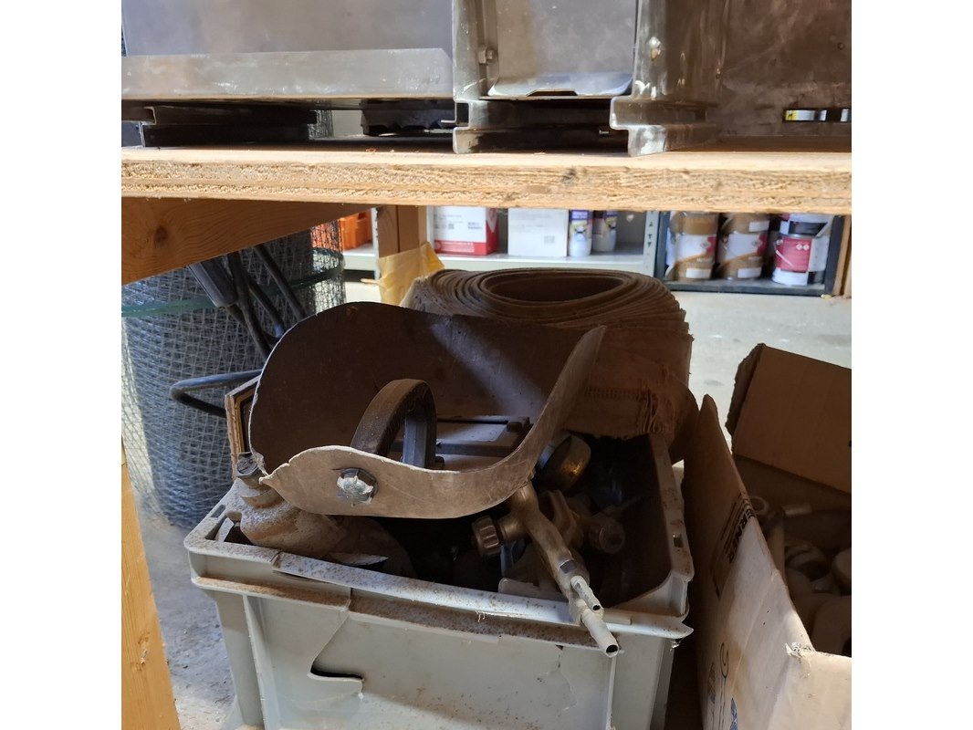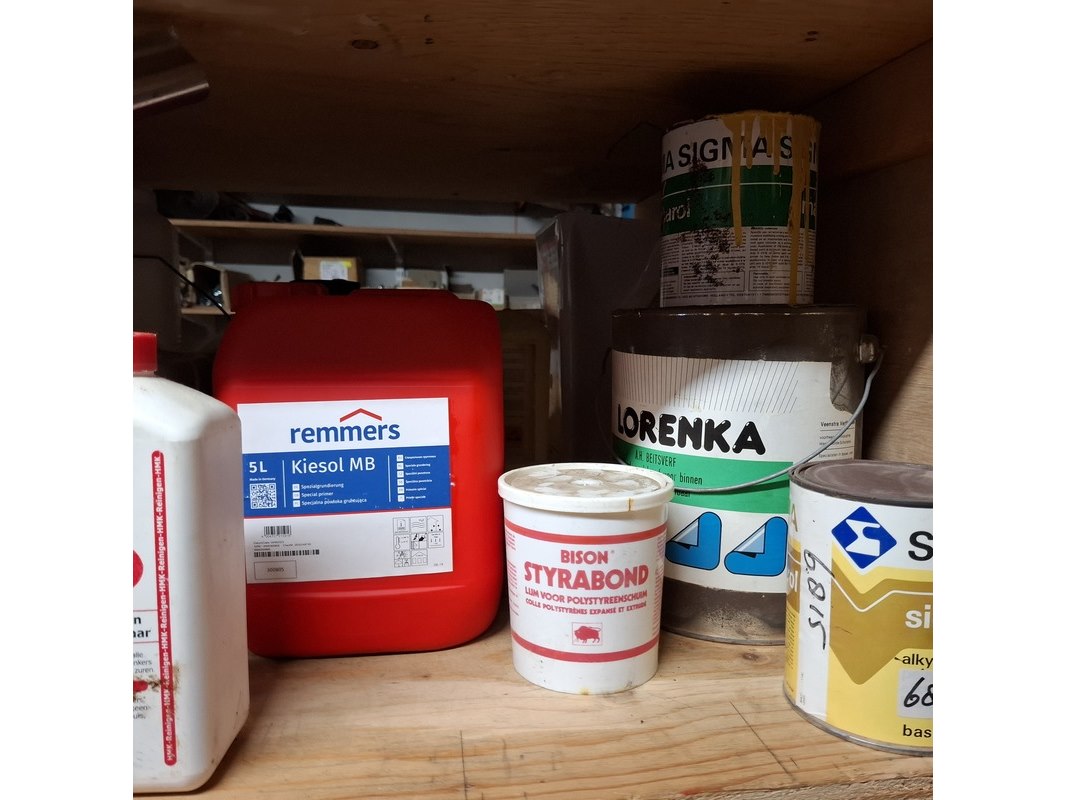Product: Partij diverse bouwbenodigdheden Specificaties: bestaande uit o.a.": bouwlampen, lijmdispensers, zeven, divers defect gereedschap, werkkleding, stroomkabel 4 aderig, duoslang, gevelklemmen, injectiemortel, grondreiniger, trafo , diverse verfrestanten etc.