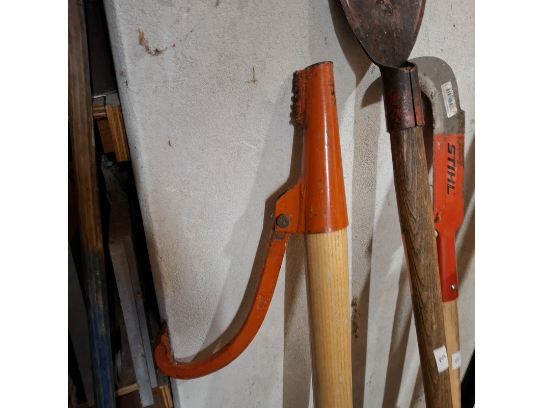Merk: o.a. Stihl Product: Tuingereedschap Specificaties: o.a. kantelhaak, 2x kapmes, boomschilmes, 2x voorhamer
