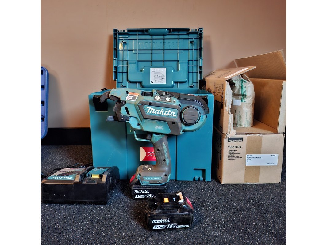 Merk: Makita Product: Accu vlechtmachine BouwJaar: 2022 Specificaties: inclusief 2x accu 18V 3.0Ah en lader, in systainer met diverse vlechtrollen