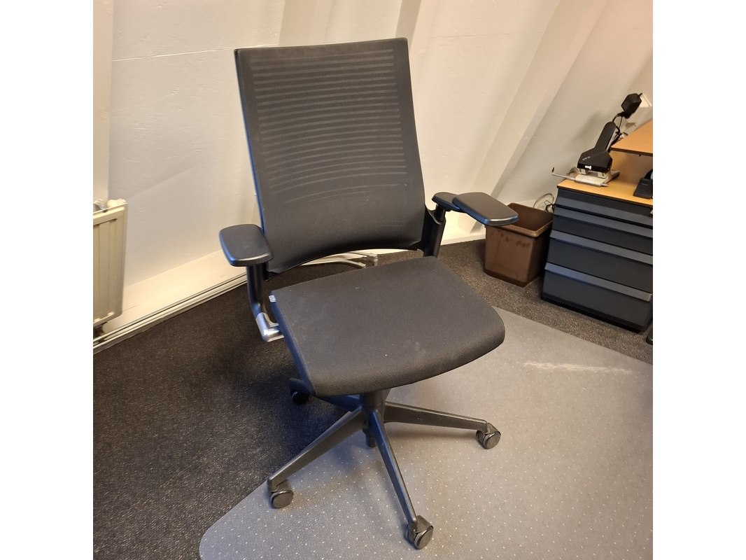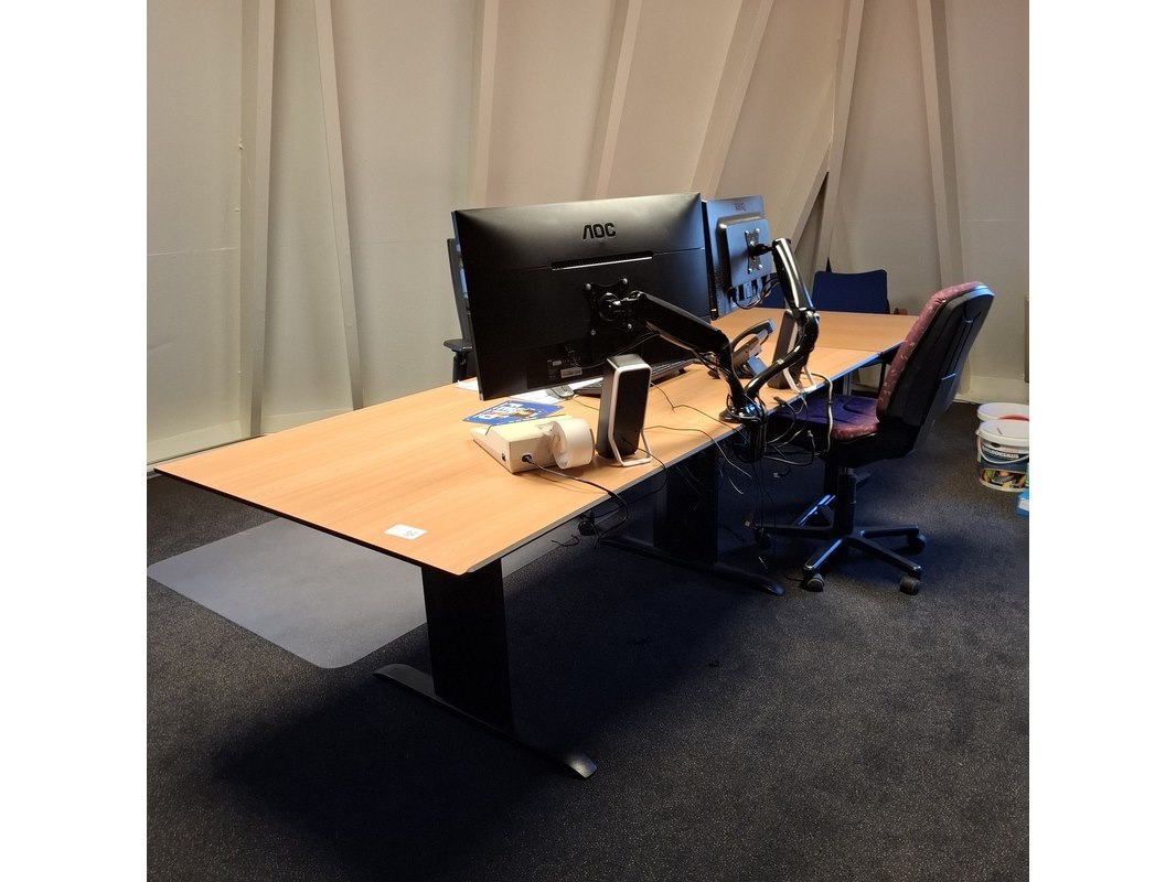 Product: Bureauopstelling met 2x monitor Specificaties: bureau lxbxh ca. 200x100x75cm, in hoogte verstelbaar bureau Ahrend lxbxh ca. 180x80x74cm, in hoogte verstelbaar inclusief ladeblok, 2x bureaustoel, 2x ontvangststoel