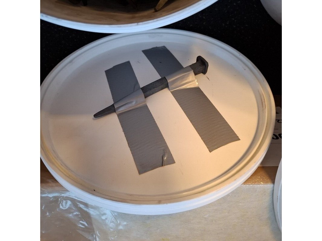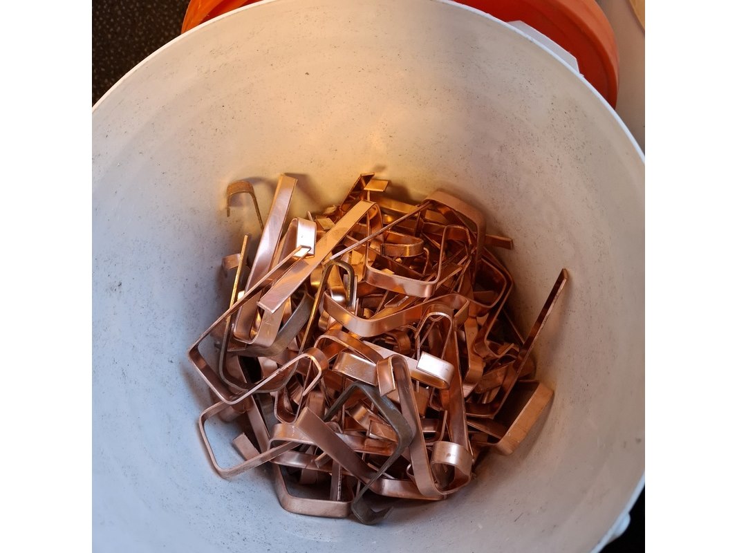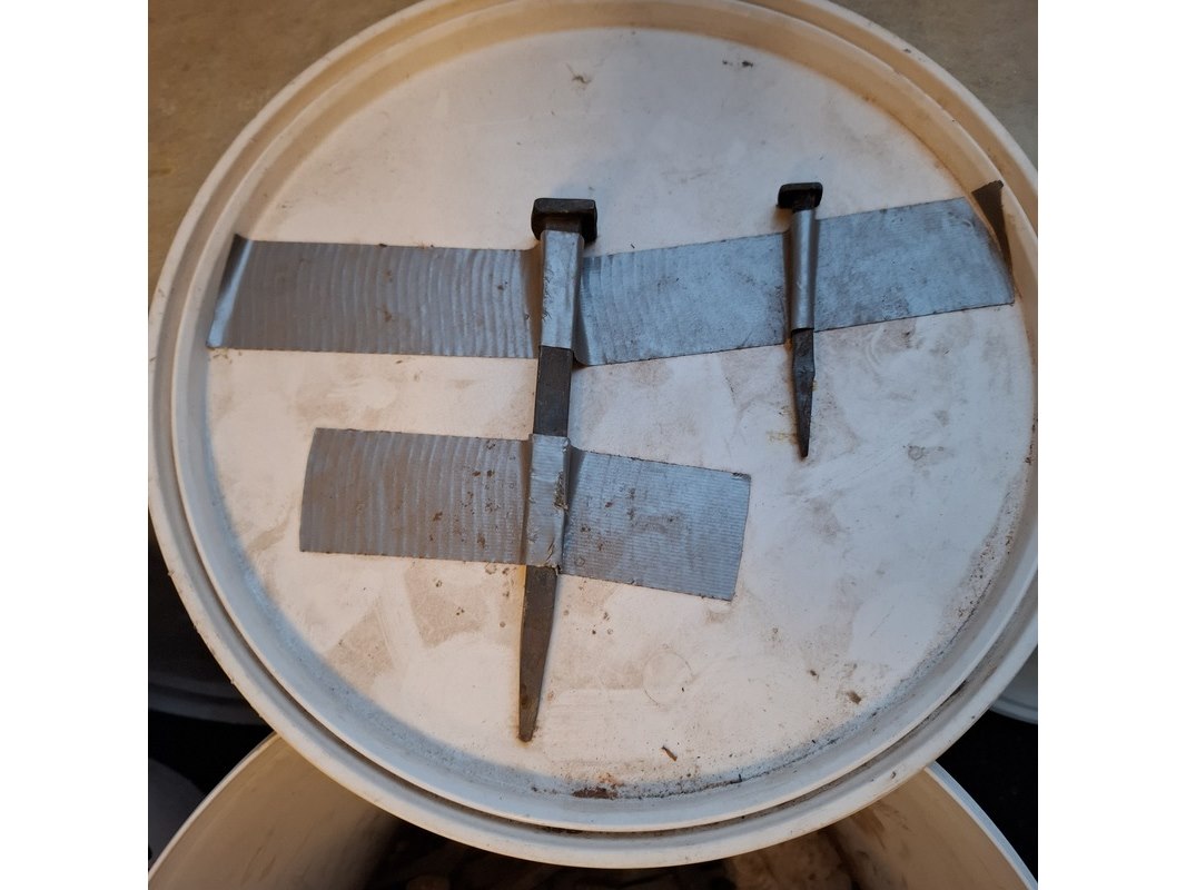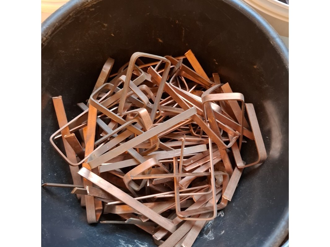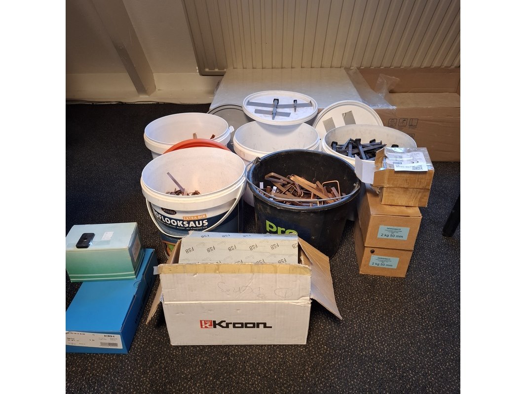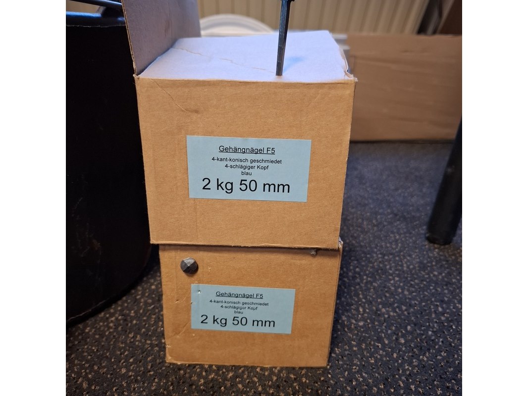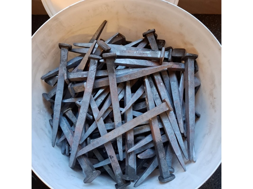 Partij gesmede spijkers met koperen panhaken