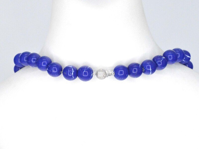 Product: Ketting met lapis lazuli edelsteen en een diamanten sluiting Specificaties: Diamant: Natuurlijk Slijpvorm: Briljant geslepen Gewicht (carat): 0.50 carat Kleur: F-G Zuiverheid: VS Slijpkwaliteit: Heel goed Edelsteen: Lapis Lazuli Slijpvorm: Rond Kleur: Intens blauw Afmetingen: 10 mm Kwaliteit: Mooi glanzend Juweel: Collier Gewicht: ca. 80 gram Afmetingen/lengte: ca. 70.0 cm Materiaal: 14k goud (585) Conditie: Nieuw Verpakking: Luxe sieradendoos Toelichting: De kwaliteit is overgenomen van het rapport behorend bij item. De waardebepaling is een beoordeling van een gecertificeerde diamantair, gebaseerd op consumentenprijzen. Extra informatie: Sluiting: 14K goud (585) met diamanten Consumentenprijs: € 3.850,-