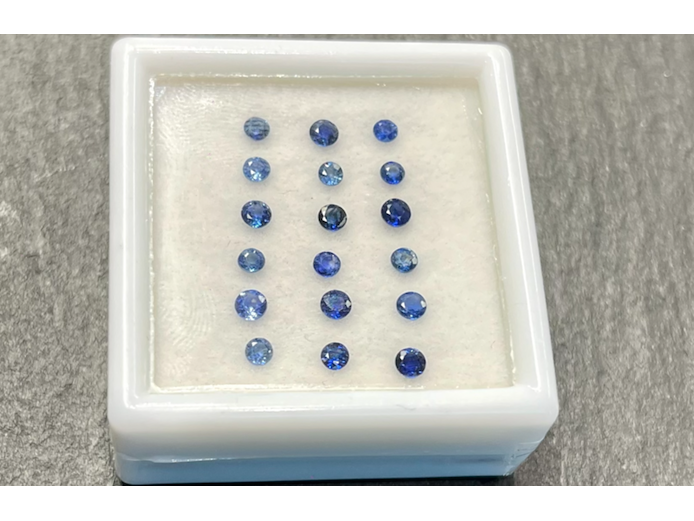 Product: Saffier - rond geslepen natuurlijke saffieren van 2.00 carat Specificaties: Edelsteen: Saffier Aantal: 18 stuks Slijpvorm: Rond geslepen Gewicht (carat): 2.00 carat Kleur: Blauw Zuiverheid: Met natuurlijke insluitsels Slijpkwaliteit: Very good Conditie: Nieuw Verpakking: Edelsteendoos Toelichting: De kwaliteit is overgenomen van het rapport behorend bij item. De waardebepaling is een beoordeling van een gecertificeerde diamantair, gebaseerd op consumentenprijzen. Consumentenprijs: € 1.760,-