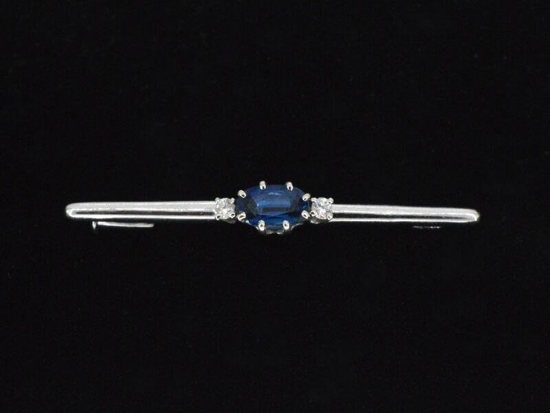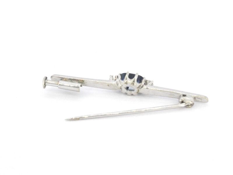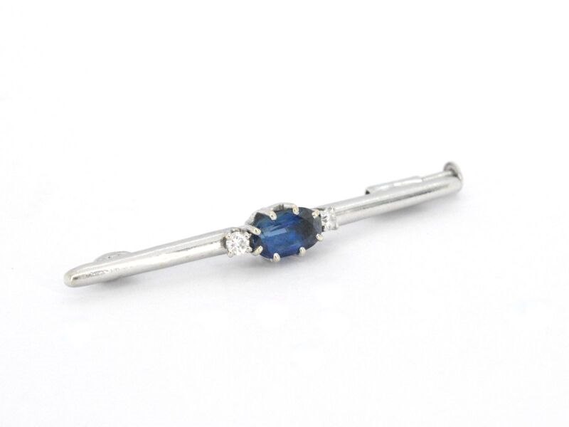 Product: Witgouden broche met edelsteen Specificaties: Diamant: Natuurlijk Aantal: 2 stuks Slijpvorm: Briljant geslepen Gewicht (carat): 0.05 carat Kleur: F Zuiverheid: VS Slijpkwaliteit: Zeer mooi Edelsteen: Natuurlijke saffier Slijpvorm: Ovaal Gewicht (carat): 0.75 carat Kleur: Blauw Juweel: Broche Gewicht: 2.6 gram Afmetingen/lengte: 41 mm Materiaal: 14K goud (585) Conditie: Zo goed als nieuw Verpakking: Luxe sieradendoos Toelichting: De kwaliteit is overgenomen van het rapport behorend bij item. De waardebepaling is een beoordeling van een gecertificeerde diamantair, gebaseerd op consumentenprijzen. Consumentenprijs: € 2.100,-