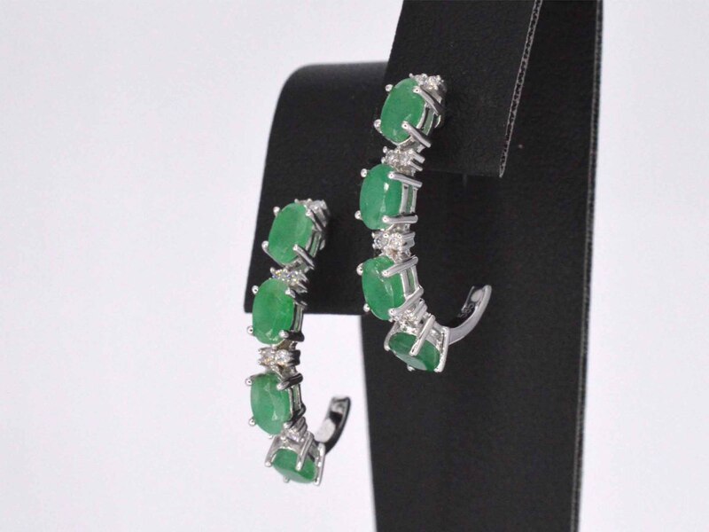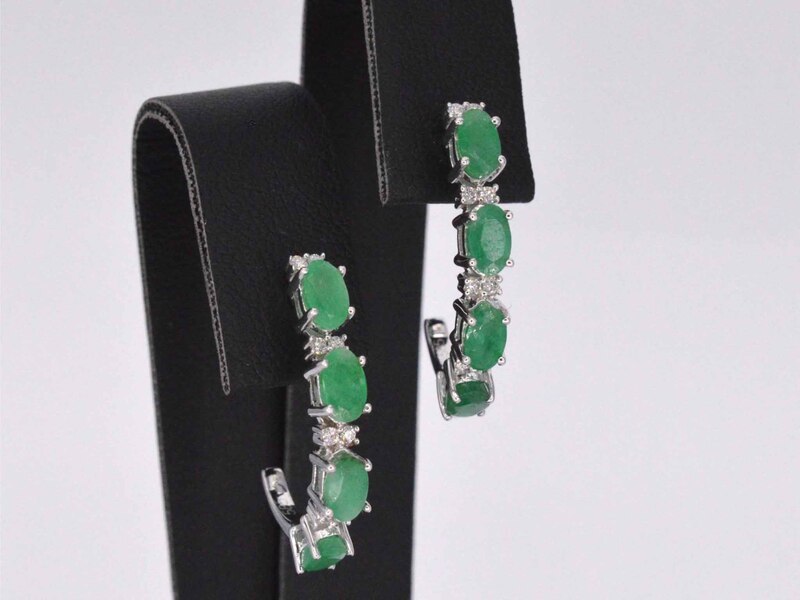 Product: Witgouden oorbellen met diamanten en smaragd Specificaties: Diamant: Natuurlijk Slijpvorm: Briljant geslepen Gewicht (carat): 0.15 carat Kleur: F-G Zuiverheid: SI-P Slijpkwaliteit: Zeer mooi Edelsteen: Smaragd Slijpvorm: Ovaal geslepen Gewicht (carat): 2.00 carat Juweel: Oorbellen Gewicht: 2.4 gram Materiaal: 14 karaat (585) Conditie: Nieuw Verpakking: Luxe sieradendoos Toelichting: De kwaliteit is overgenomen van het rapport behorend bij item. De waardebepaling is een beoordeling van een gecertificeerde diamantair, gebaseerd op consumentenprijzen. Consumentenprijs: € 1.768,-