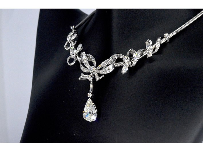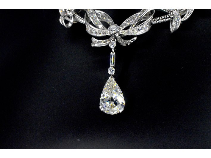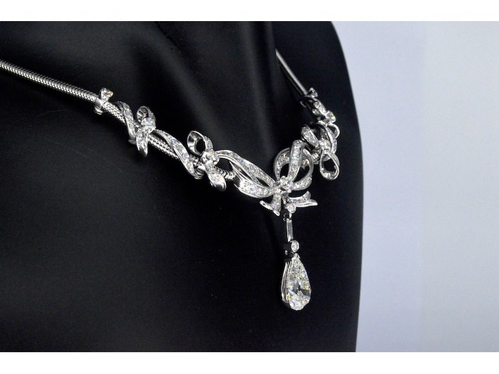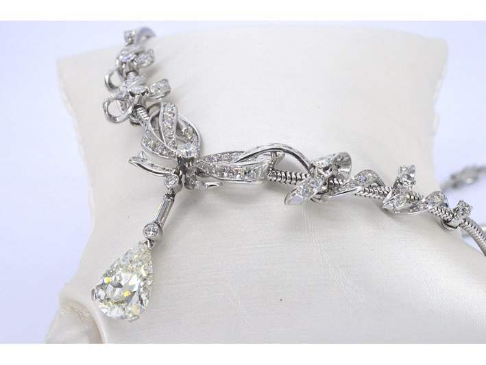 Product: Belangrijk collier met een grote peer vorm diamant van 3.50 carat en natuurlijke diamanten Specificaties: Diamant: Natuurlijk Aantal: 1 stuk Slijpvorm: Peer vorm geslepen Gewicht (carat): 3.50 carat Kleur: Warm getint Zuiverheid: VS-SI Slijpkwaliteit: Zeer mooi geslepen uit de tijd Diamant (secundair): Natuurlijk Aantal diamanten: 80 stuks Slijpvorm: Swiss geslepen Gewicht (carat): 1.20 carat Kleur: F-G Zuiverheid: VS Diamant (secundair): Natuurlijk Aantal diamanten: 9 stuks Slijpvorm: Briljant geslepen Gewicht (carat): 0.75 carat Kleur: F-G Zuiverheid: VS Slijpkwaliteit: Zeer mooi Diamant (secundair): Natuurlijk Aantal: 1 stuk Slijpvorm: Baguette geslepen Gewicht (carat): 0.10 carat Kleur: F-G Zuiverheid: VS Slijpkwaliteit: Zeer mooi Juweel: Halsketting Gewicht: 25.1 gram Afmetingen/lengte: 41 cm Materiaal: 14K goud (585) Conditie: Zo goed als nieuw Verpakking: Luxe sieradendoos Toelichting: De kwaliteit is overgenomen van het rapport behorend bij item. De waardebepaling is een beoordeling van een gecertificeerde diamantair, gebaseerd op consumentenprijzen. Consumentenprijs: € 108.500,-