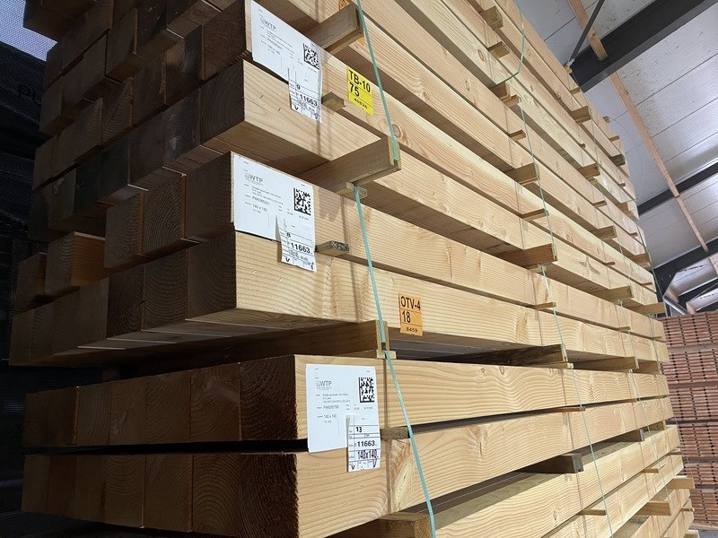 Ca. 12x douglas balken geschaafd, 140x140mm, lengte 400cm
