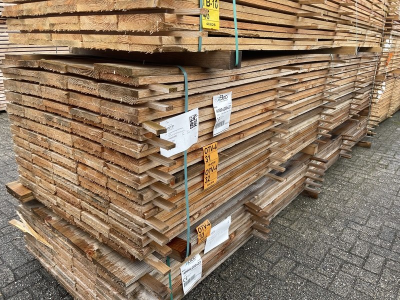Ca. 64x douglas planken fijnbezaagd, 22x200mm, lengte 400cm