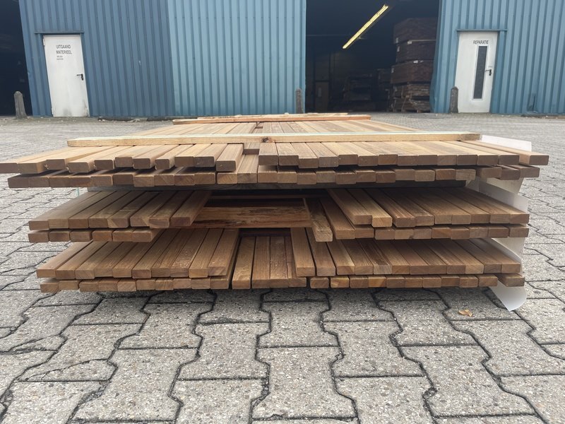 Ca. 292x guyana teak latten geschaafd, 21x40mm, lengte 74/125cm, 46/155cm, 172/185cm