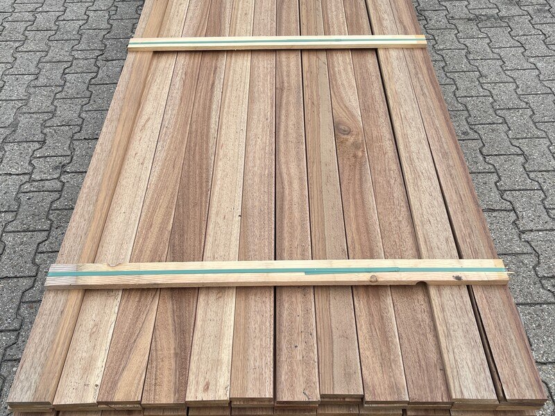 Ca. 208x guyana teak planken geschaafd, 16x90mm, lengte 30/150cm, 144/200cm, 34/250cm
