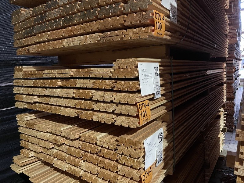 Product: Douglas Design- Triple- Deens profiel Materiaal: Douglas Afmeting: 22x142mm, lengte 300cm Conditie: nieuw