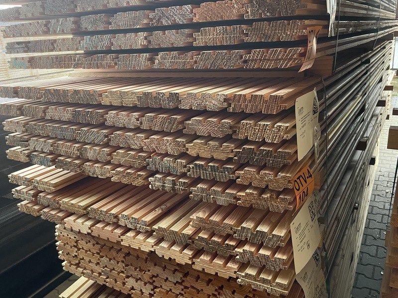 Product: Douglas Design- Triple- Deens profiel Materiaal: Douglas Afmeting: 22x142mm, lengte 400cm Conditie: nieuw