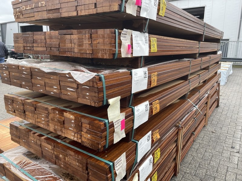 Ca. 42x guyana teak planken geschaafd, 25x140mm, lengte 455cm