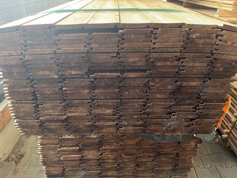 Ca. 98x channelsiding bruin geïmpregneerd, 18x140mm, lengte 420cm