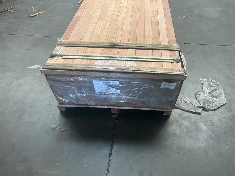 Product: Bankirai Regels Geschaafd Gevingerlast Gelamineerd Materiaal: Bankirai Afmeting: 44x68mm, lengte 400ccm Conditie: nieuw