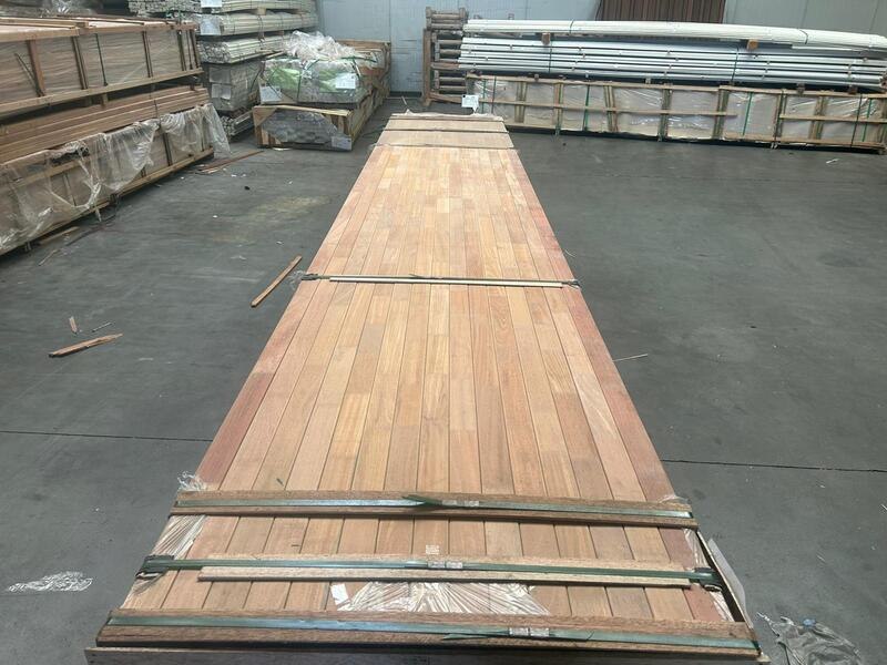 Ca. 56x bankirai regels geschaafd gevingerlast gelamineerd, 44x68mm, lengte 400ccm