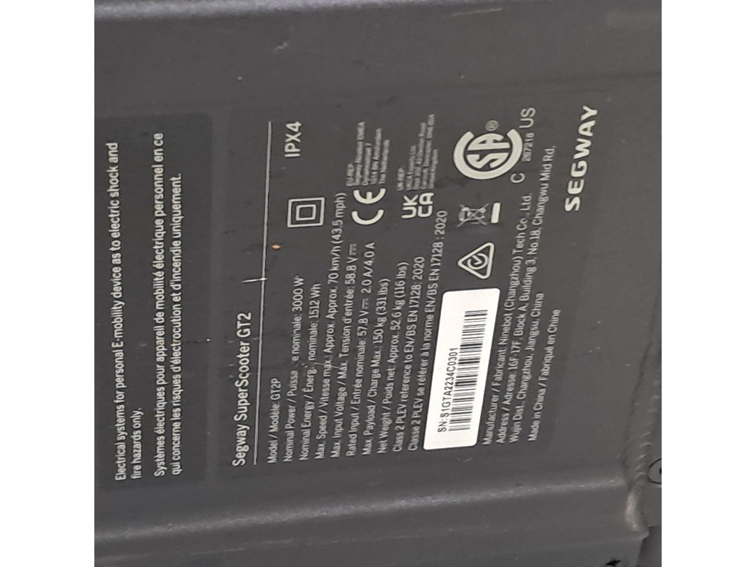 Merk: Segway Product: Elektrische step Conditie: gebruikt Specificaties: Maximale snelheid 70 km/u Eigen gewicht 150 kg Exclusief acculader
