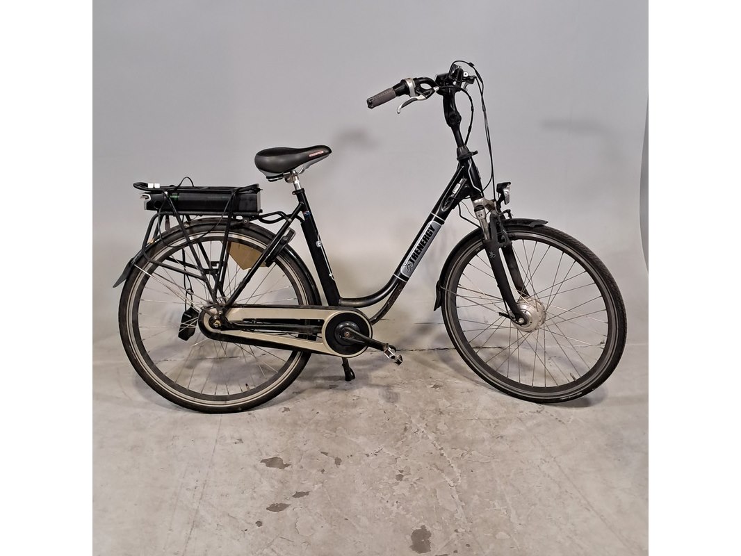 Merk: Trenergy Product: Elektrische damesfiets Afmeting: Framemaat ca. 53 cm Conditie: gebruikt Specificaties: Geveerde voorvork 7 versnellingen Inclusief fietscomputer, accu en lader. Fiets gaat niet aan. Uitgerust met voorwielmotor