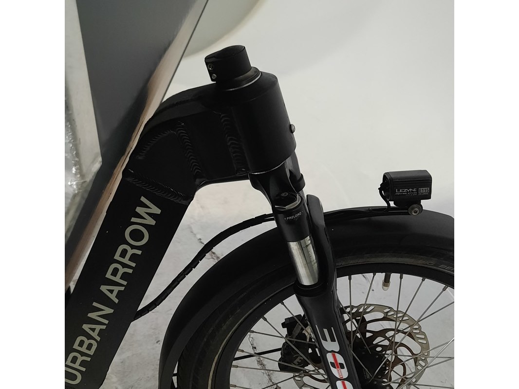 Merk: Urban Arrow Product: Elektrische bakfiets Afmeting: Framemaat ca. 52 cm Conditie: gebruikt Specificaties: Inclusief fietscomputer en accu's Exclusief sleutels, fiets staat niet op slot Exclusief acculader.