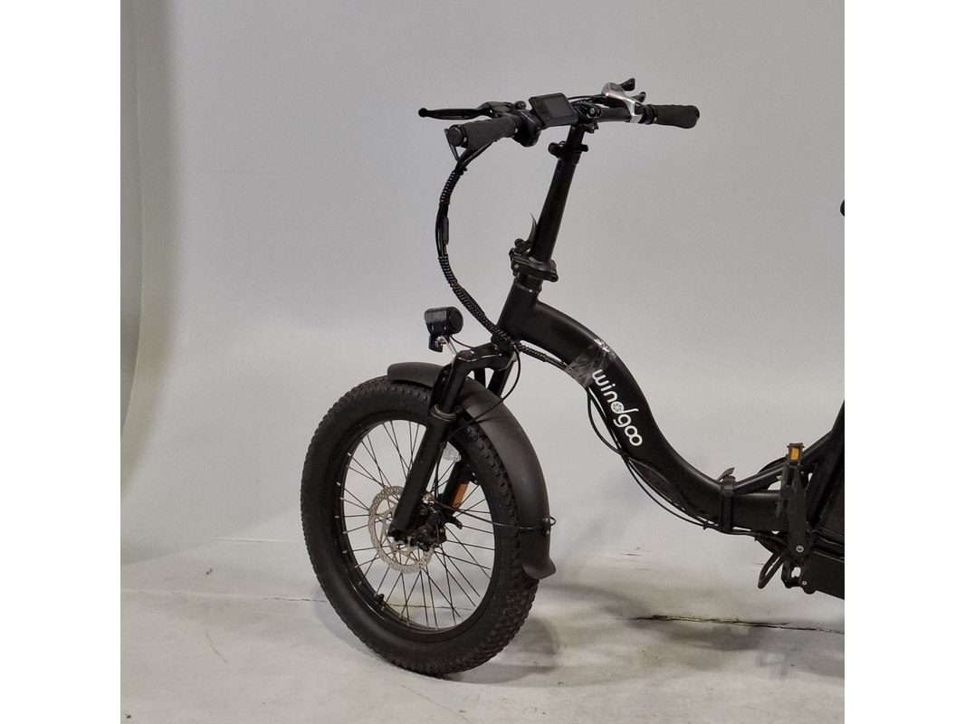Merk: windgoo Product: Elektrische vouwfiets Afmeting: Framemaat ca. 40 cm Conditie: gebruikt Specificaties: Inclusief fietscomputer en accu. Fietscomputer gaat niet aan; vermoedelijk defect. Exclusief acculader. Sleutel accu ontbreekt; staat op slot.