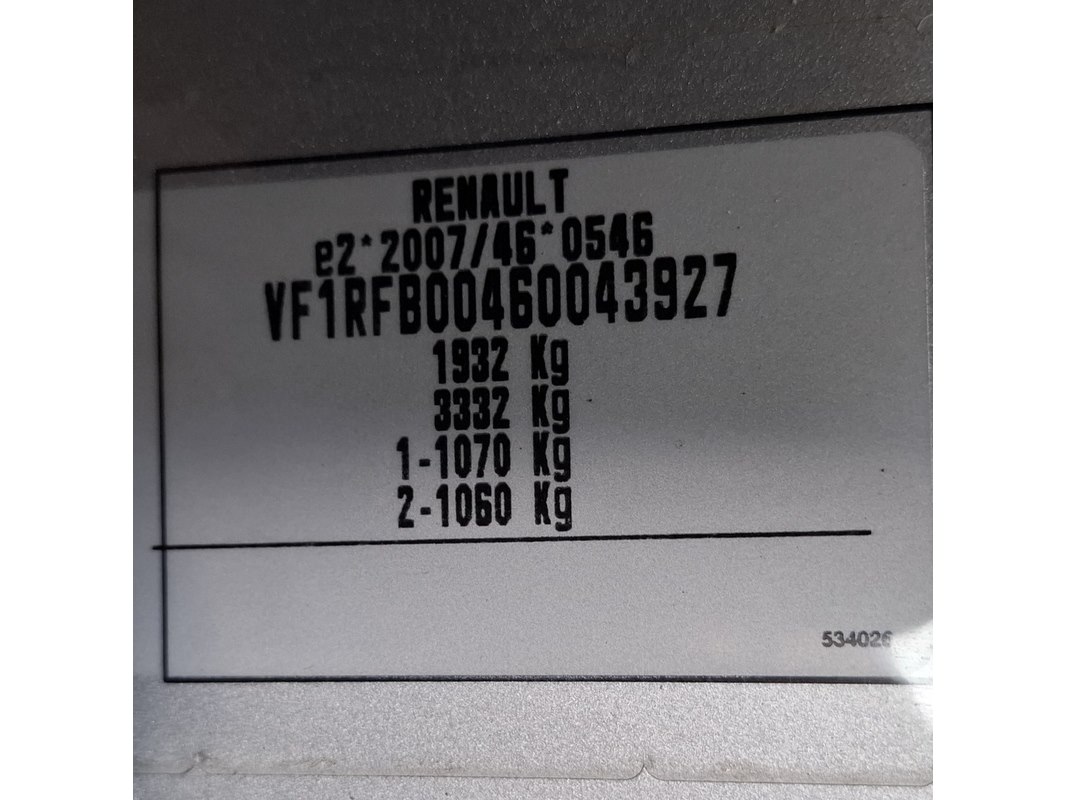 Merk: Renault Product: Personenauto Conditie: gebruikt Specificaties: Kenteken: Niet geregistreerd Eerste toelating nationaal: Niet geregistreerd APK vervaldatum: Niet van toepassing Brandstof: Diesel Transmissie: Handgeschakeld Afgelezen tellerstand: 98928 Aantal sleutels: 2 VIN nummer: VF1RFB00460043927 Start: Nee Opties e.d. Radio met display Navigatie Airconditioning Cruise control Elektrische parkeer rem Waargenomen gebreken Gebruikssporen rondom Diverse onderdelen van dashboard liggen los DOM 51 van toepassing. Cvo aanwezig.