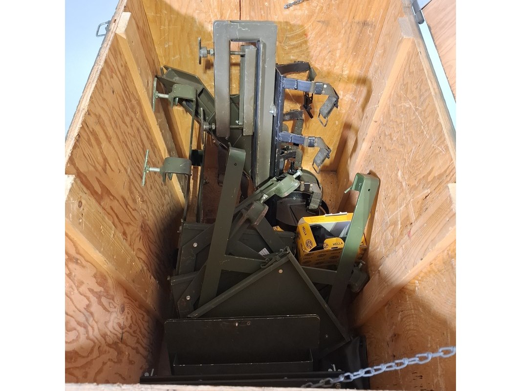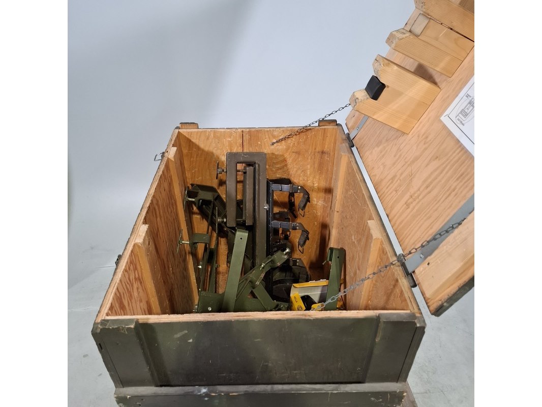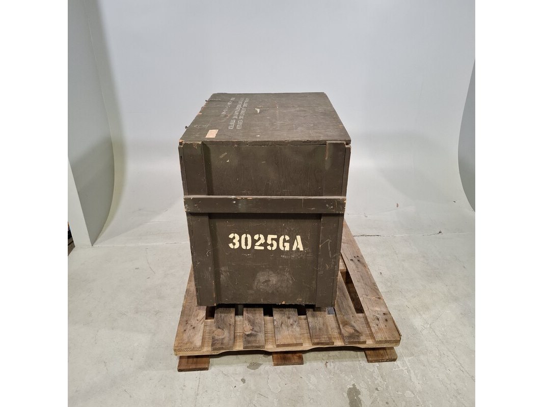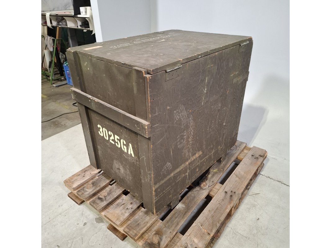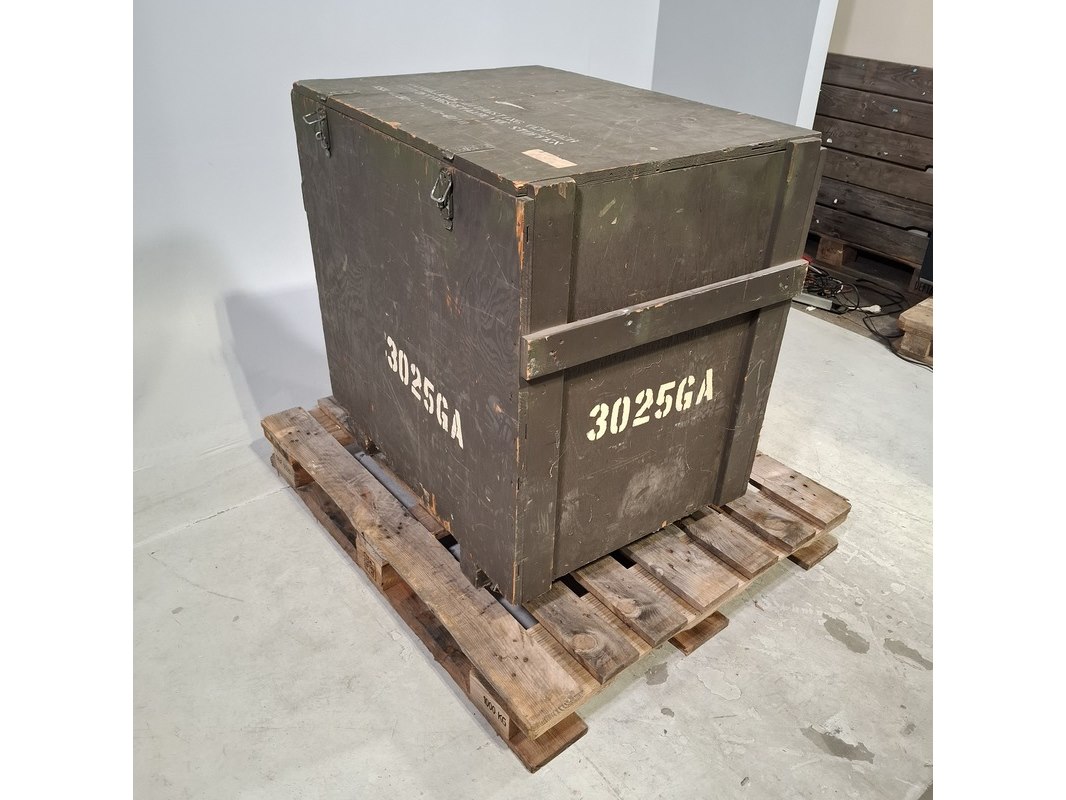 Product: Transportkist met bevestigingsplaten Afmeting: kist hxbxd ca. 90x92x65 cm Specificaties: Technische staat en compleetheid onbekend, Exclusief pallet.
