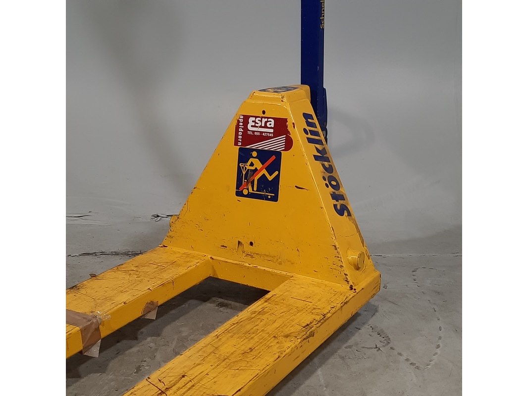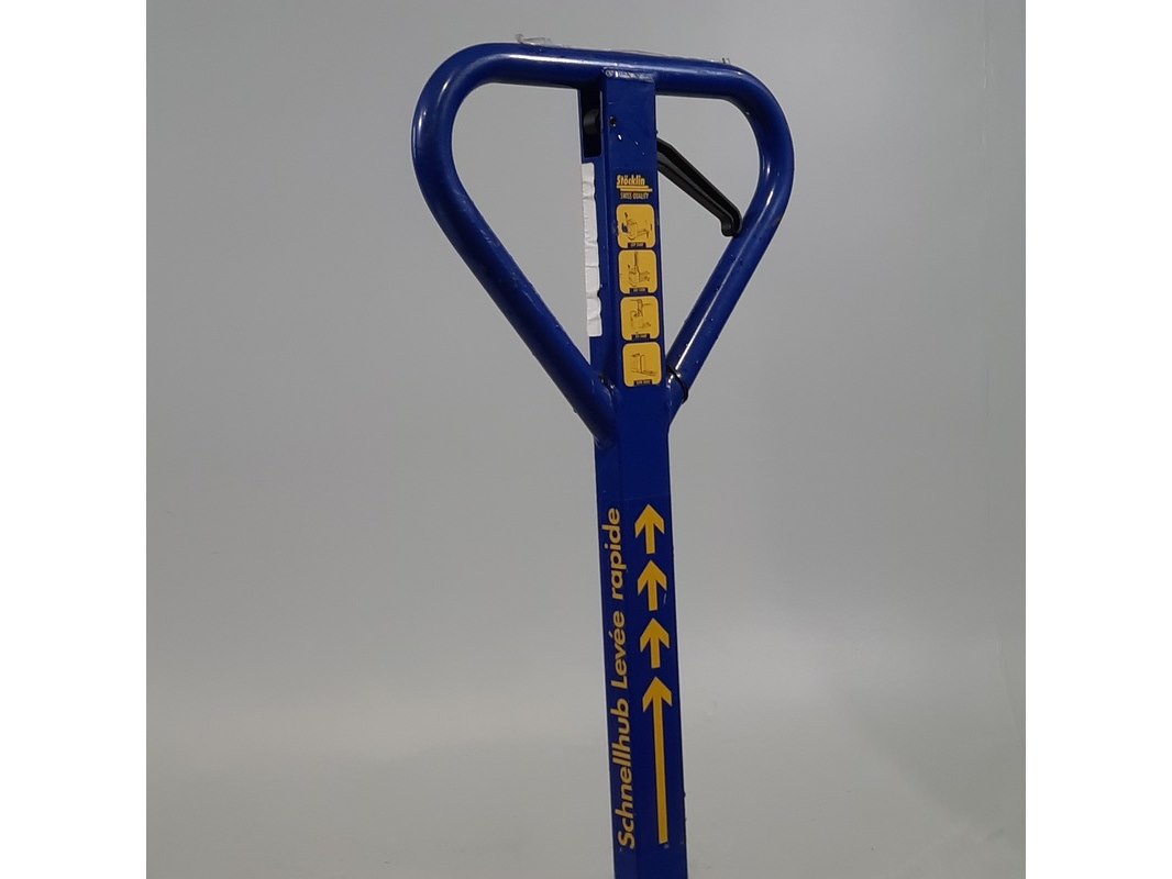 Merk: Stöcklin Product: Palletwagen Afmeting: Lepel lengte ca. 90 cm BouwJaar: 2022 Conditie: gebruikt Specificaties: Capaciteit 2000 kg Technische staat en compleetheid onbekend.