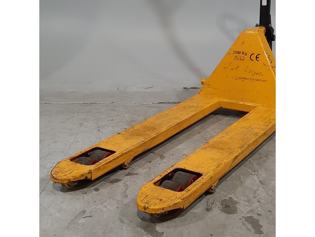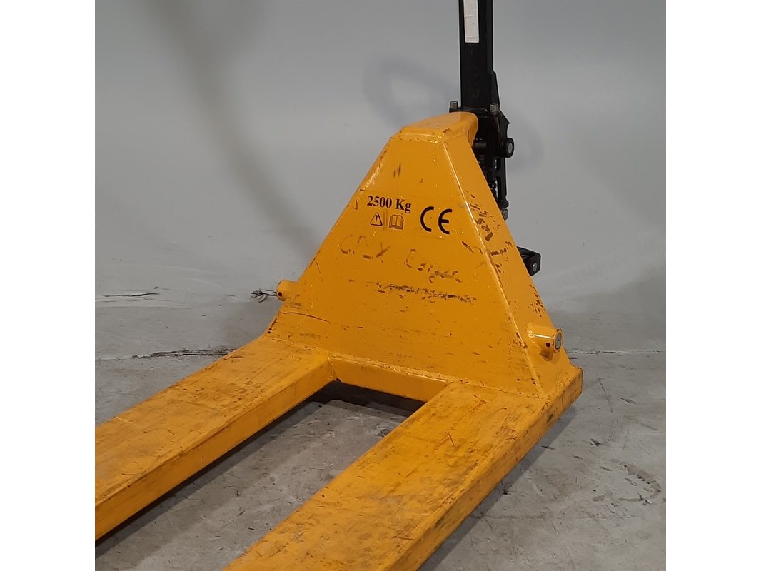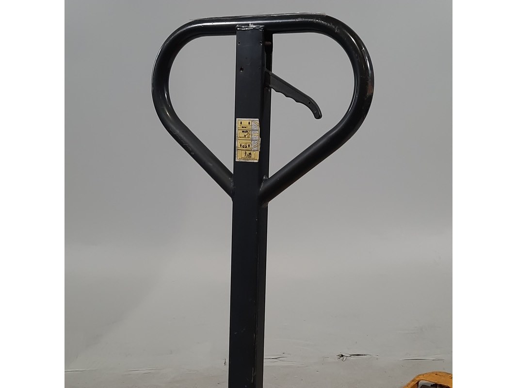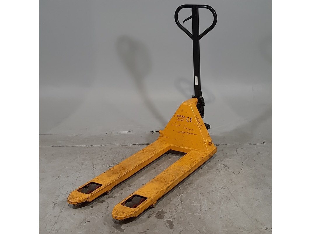Product: Palletwagen Afmeting: Lepel lengte ca. 115 cm Conditie: gebruikt Specificaties: Capaciteit 2500 kg Technische staat en compleetheid onbekend.
