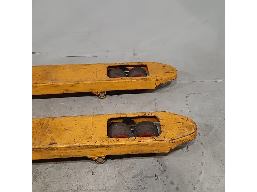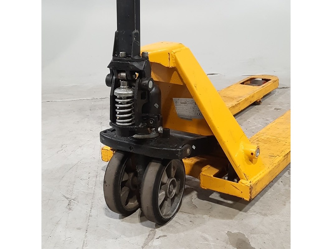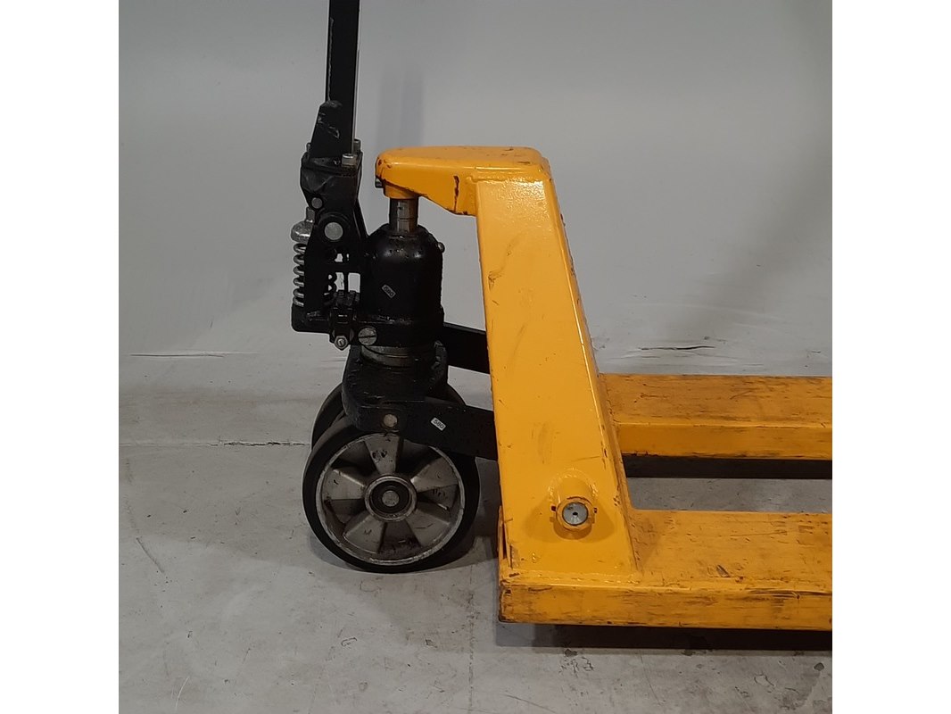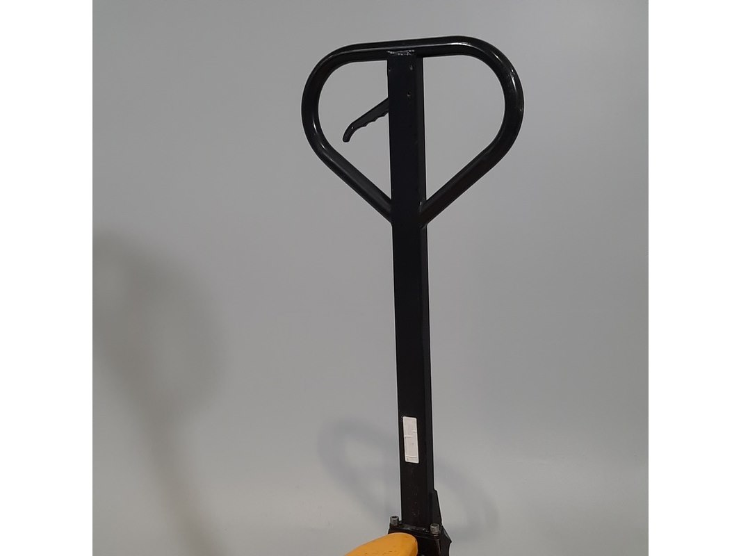 Product: Palletwagen Afmeting: Lepel lengte ca. 115 cm Conditie: gebruikt Specificaties: Capaciteit 2500 kg Technische staat en compleetheid onbekend.