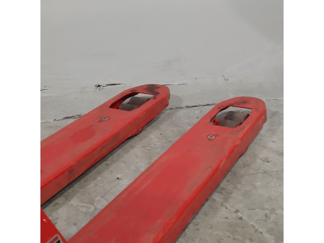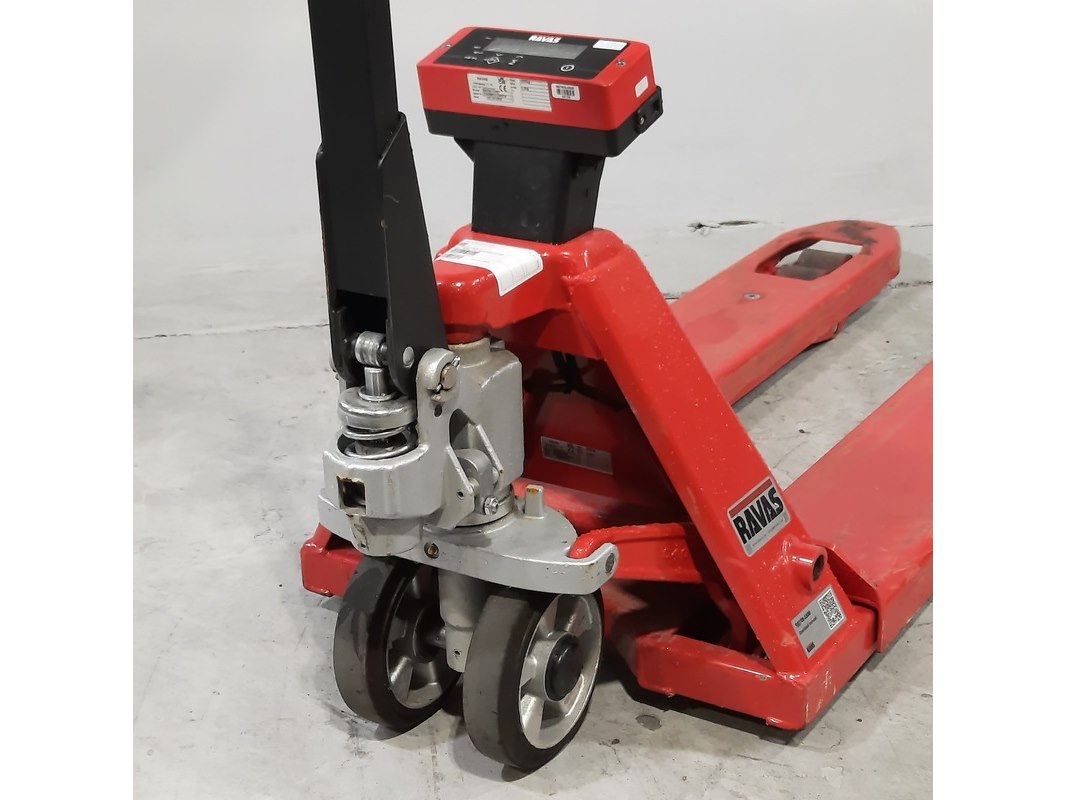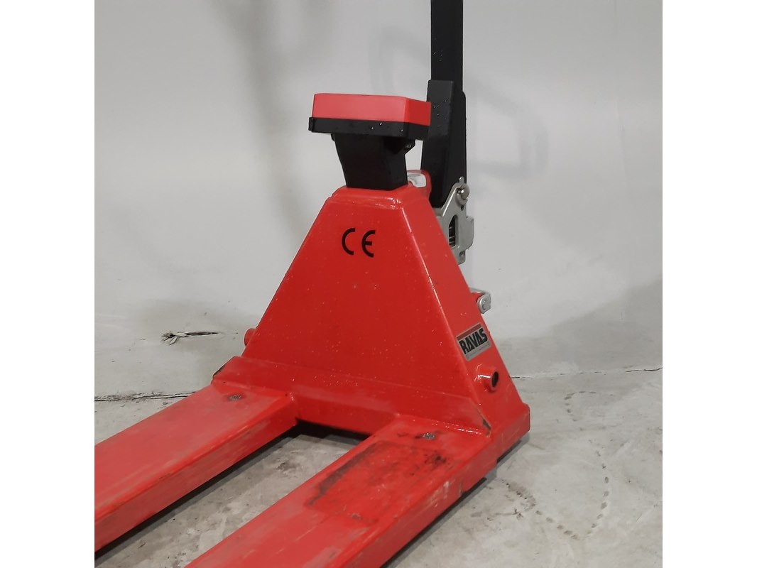 Merk: Ravas Product: Palletwagen Afmeting: Lepel lengte ca. 115 cm Conditie: gebruikt Specificaties: Capaciteit 2000 kg Technische staat en compleetheid onbekend.