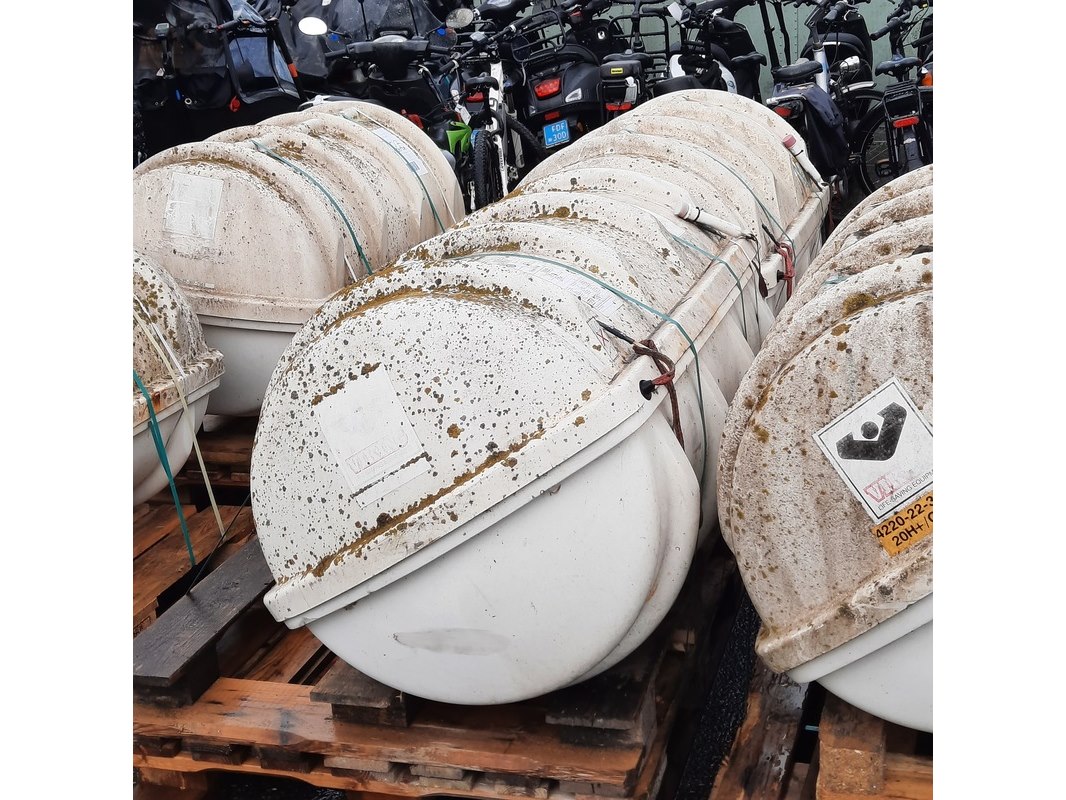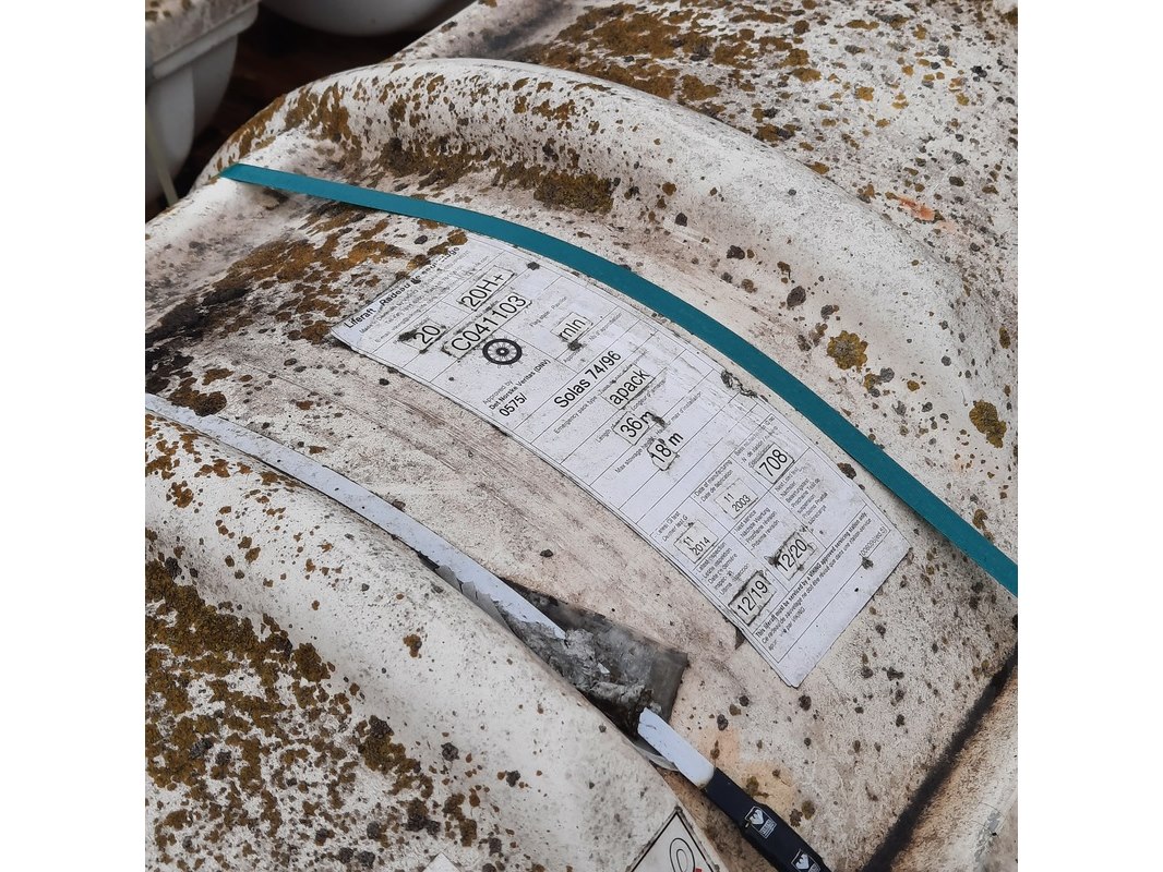 Product: Reddingsvlot Afmeting: Capsule lxb ca. 148x83 cm Conditie: gebruikt Specificaties: Technische staat en compleetheid onbekend. Keuring verlopen. Exclusief pallet