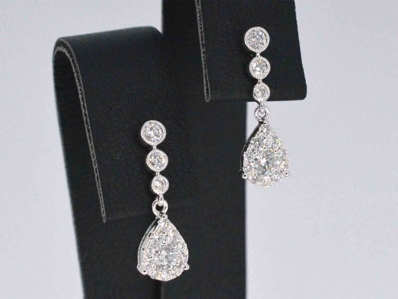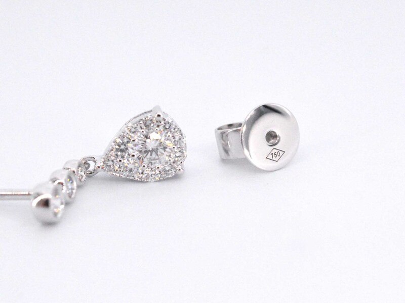 Product: Witgouden druppelvormige oorhangers met diamanten Specificaties: Diamant: Natuurlijk Slijpvorm: Briljant geslepen Gewicht (carat): 0.75 carat Kleur: F-G Zuiverheid: VS Slijpkwaliteit: Zeer mooi Juweel: Oorbellen Gewicht: 2.2 gram Materiaal: 18K goud (750) Conditie: Nieuw Verpakking: Luxe sieradendoos Toelichting: De kwaliteit is overgenomen van het rapport behorend bij item. De waardebepaling is een beoordeling van een gecertificeerde diamantair, gebaseerd op consumentenprijzen. Consumentenprijs: € 5.548,-