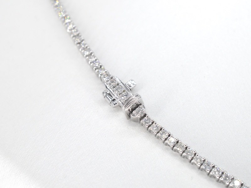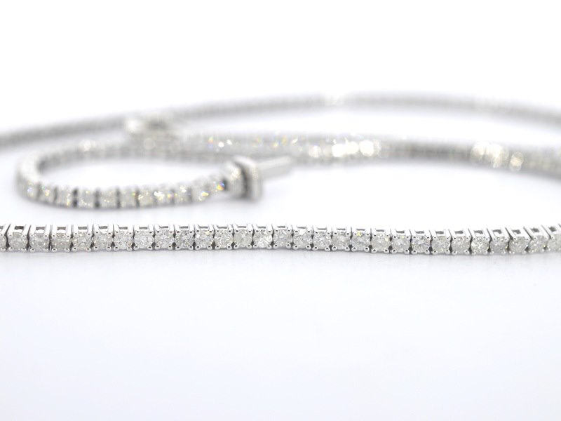 Product: Witgouden collier met briljant geslepen diamanten Specificaties: Diamant: Natuurlijk Aantal: 210 stuks Slijpvorm: Briljant geslepen Gewicht (carat): 5.80 carat Kleur: F Zuiverheid: P Slijpkwaliteit: Zeer mooi Juweel: Halsketting Gewicht: 16 gram Afmetingen/lengte: 43 cm Materiaal: 14k goud (585) Conditie: Nieuw Verpakking: Luxe sieradendoos Toelichting: De kwaliteit is overgenomen van het rapport behorend bij item. De waardebepaling is een beoordeling van een gecertificeerde diamantair, gebaseerd op consumentenprijzen. Consumentenprijs: € 18.280,-