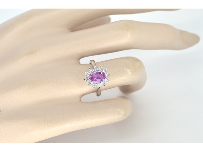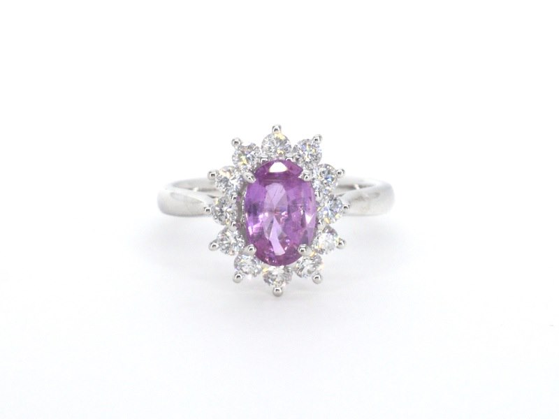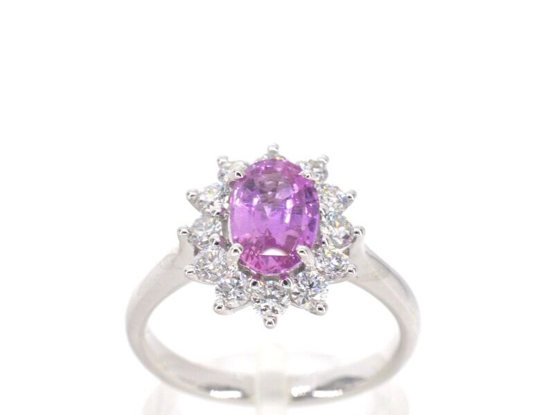 Product: Witgouden ring met diamanten en 1.50 carat pink sapphire Specificaties: Diamant: Natuurlijk Aantal: 12 stuks Slijpvorm: Briljant geslepen Gewicht (carat): 0.70 carat Kleur: F Zuiverheid: VS Slijpkwaliteit: Zeer mooi Edelsteen: Natuurlijke saffier Slijpvorm: Ovaal geslepen Gewicht (carat): 1.50 carat Kleur: Roze Zuiverheid: Met mooie natuurlijke insluitsels Juweel: Ring Gewicht: 3.9 gram Ringmaat (op maat gemaakt*): 53 (17 mm) Materiaal: 18k goud (750) Conditie: Nieuw Verpakking: Luxe sieradendoos Toelichting: De kwaliteit is overgenomen van het rapport behorend bij item. De waardebepaling is een beoordeling van een gecertificeerde diamantair, gebaseerd op consumentenprijzen. Consumentenprijs: € 12.000,- *Ringen kunnen mogelijk op maat gemaakt worden.