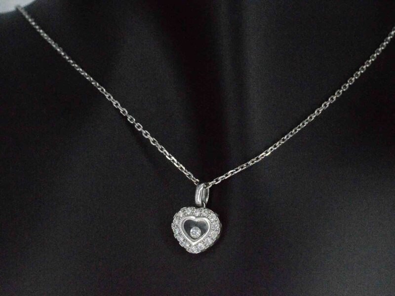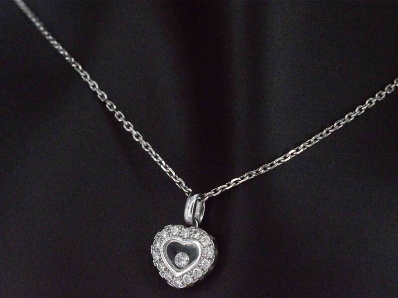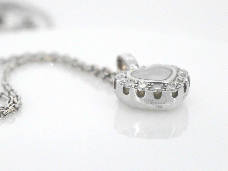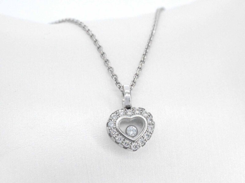 Product: Chopard - Chopard Happy Diamonds Icons Heart collier met hanger witgoud met diamant Specificaties: Diamant: Natuurlijk Aantal: 1 stuk Slijpvorm: Briljant geslepen Gewicht (carat): 0.05 carat Kleur: D-E Zuiverheid: VVS Slijpkwaliteit: Exceptioneel Diamant (secundair): Natuurlijk Aantal diamanten: 14 stuks Slijpvorm: Briljant geslepen Gewicht (carat): 0.17 carat Juweel: Halsketting Merk: Chopard Model: Happy Diamonds Serienummer: 61011**/6507 Gewicht: 6.6 gram Afmetingen/lengte: 43 cm Materiaal: 18K goud (750) Conditie: Zo goed als nieuw Verpakking: Originele sieradendoos Toelichting: De kwaliteit is overgenomen van het rapport behorend bij item. De waardebepaling is een beoordeling van een gecertificeerde diamantair, gebaseerd op consumentenprijzen. Extra informatie: Komt met originele Chopard doos. Originele Chopard diamanten van hoge kwaliteit Consumentenprijs: € 5.000,-