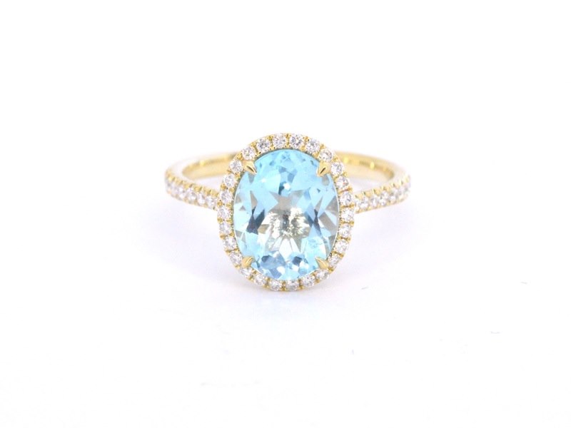 Product: Gouden entourage ring met ovaal geslepen topaas Specificaties: Aantal: 44 stuks Slijpvorm: Briljant geslepen Gewicht (carat): 0.35 carat Kleur: F-G Zuiverheid: VS Slijpkwaliteit: Zeer mooi Edelsteen: Topaas Aantal: 1 stuk Slijpvorm: ovaal Gewicht (carat): 3.50 carat Kleur: swiss blue Juweel: Ring Gewicht: 3.2 gram Ringmaat (op maat gemaakt*): 53 (17 mm) Materiaal: 18K goud (750) Conditie: Nieuw Verpakking: Luxe sieradendoos Toelichting: De kwaliteit is overgenomen van het rapport behorend bij item. De waardebepaling is een beoordeling van een gecertificeerde diamantair, gebaseerd op consumentenprijzen. Consumentenprijs: € 5.268,- *Ringen kunnen mogelijk op maat gemaakt worden.
