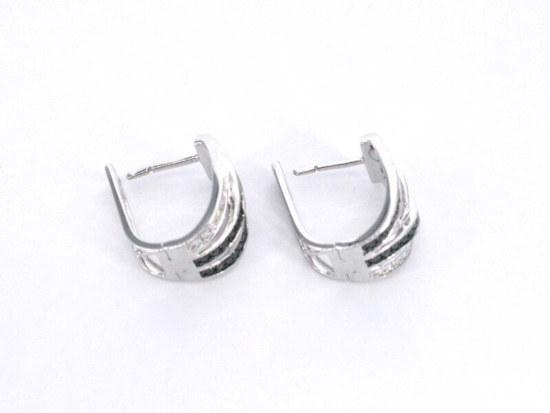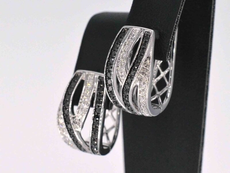 Product: Witgouden design oorbellen met witte en zwarte (enhanced) briljant geslepen diamanten Specificaties: Diamant: Natuurlijk Slijpvorm: Briljant geslepen Gewicht (carat): 1.00 carat Kleur: Hoog wit (F-G) en zwart (enhanced) Zuiverheid: VS Slijpkwaliteit: Zeer mooi Juweel: Oorbellen Gewicht: 8.5 gram Afmetingen/lengte: 18 x 12 mm Materiaal: 18K goud (750) Conditie: Nieuw Verpakking: Luxe sieradendoos Toelichting: De kwaliteit is overgenomen van het rapport behorend bij item. De waardebepaling is een beoordeling van een gecertificeerde diamantair, gebaseerd op consumentenprijzen. Consumentenprijs: € 8.453,-