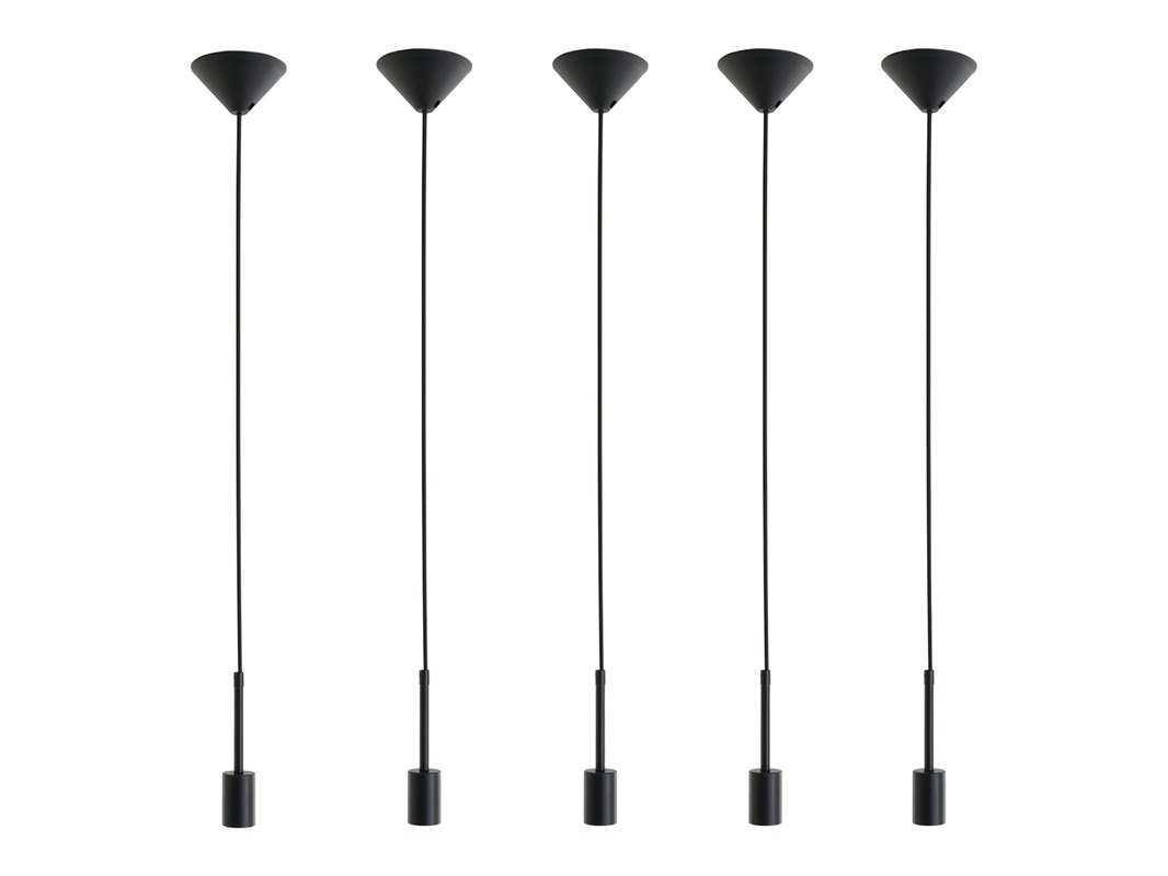 Merk: Mexlite Product: Hanglamp Minimalics Kleur: zwart Materiaal: metaal, elektronica Afmeting: 10cm ø x 170 hoog Conditie: nieuw Specificaties: Type: hanglamp / pendel Kleur: zwart Fitting: E27 Maximaal vermogen: 40 watt Lichtbron inbegrepen: nee Hoogte: verstelbaar van ca. 42 – 170 cm Levering: kavel met 5 lampen