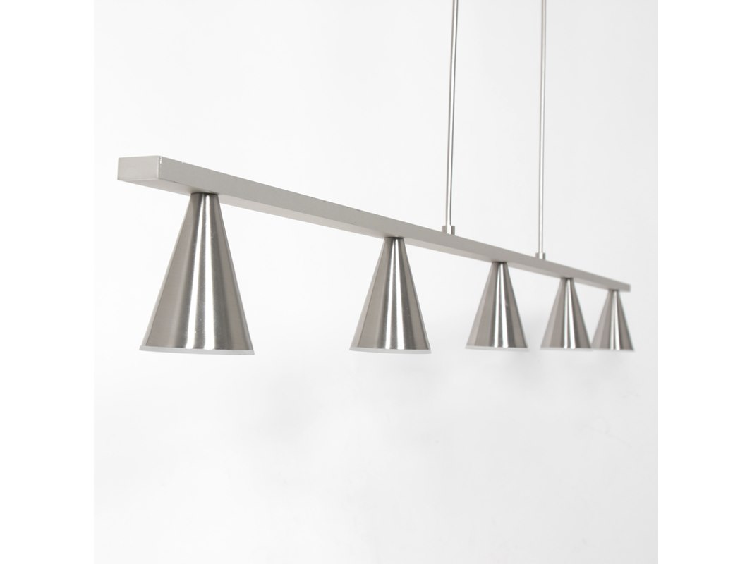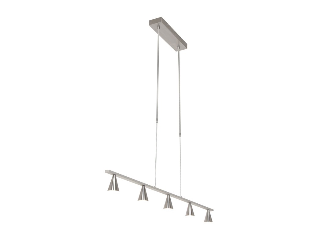 Merk: Steinhauer Product: Hanglamp Vortex Kleur: staal Materiaal: metaal, elektronica Afmeting: 120 x 10 x 85-145 Conditie: nieuw Specificaties: Type: hanglamp Kleur: geborsteld staal Aantal lichtpunten: 5 Lichtbron: geïntegreerde LED Vermogen: 5 x 5 watt Totale lichtopbrengst: ca. 1100 lumen Lichtkleur: instelbaar 2700 – 4000 Kelvin Bediening: touchdimmer op armatuur Lengte: ca. 120 cm Hoogte: verstelbaar van ca. 85 – 145 cm