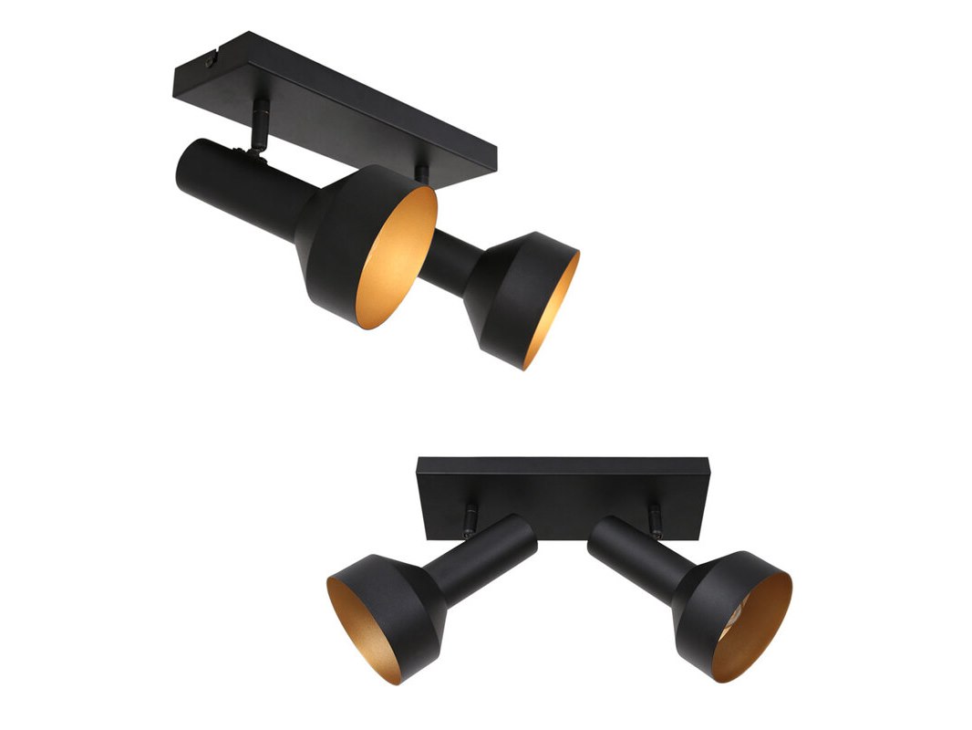 Merk: Anne Light Product: Plafond spot Bundle Kleur: zwart goud Materiaal: metaal, elektronica Afmeting: 18 x 11 x 18 Conditie: nieuw Specificaties: Type: plafondspot Kleur: mat zwart met goudkleurige binnenzijde Aantal lichtpunten: 2 Fitting: 2 x E27 Maximaal vermogen: 40 watt per lichtpunt Lichtbron inbegrepen: nee Functies: draaibaar en kantelbaar Levering: kavel met 2 armaturen