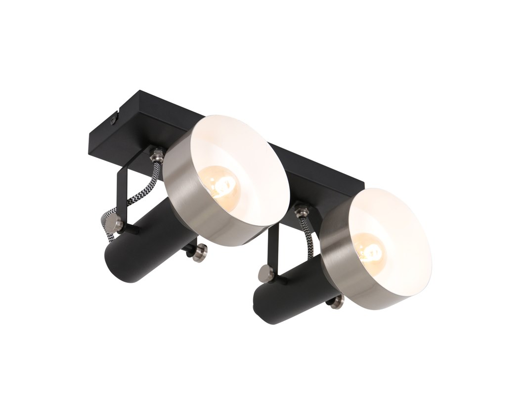 2x spot - plafondlamp acier mexlite, 3338zw, zwart staal, nieuw in doos