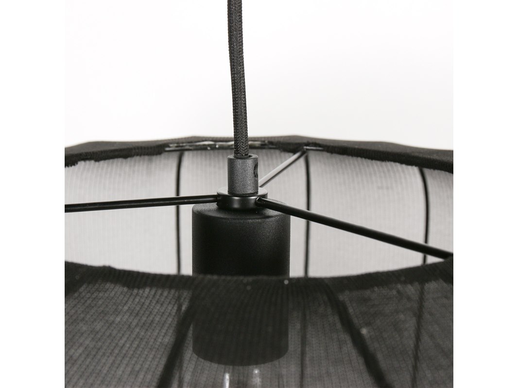 Merk: Anne Light Product: Hanglamp Sable 60cm Kleur: zwart Materiaal: linnen, metaal, elektronica Afmeting: 60cm ø x 150 hoog Conditie: nieuw Specificaties: Type: hanglamp Kleur: zwart Materiaal kap: transparant zwart linnen Fitting: E27 Maximaal vermogen: 40 watt Lichtbron inbegrepen: nee Diameter kap: ca. 60 cm Hoogte kap: ca. 30 cm Hoogte: verstelbaar van ca. 30 – 150 cm Plafondkap: zwart Levering: kavel met 2 hanglampen