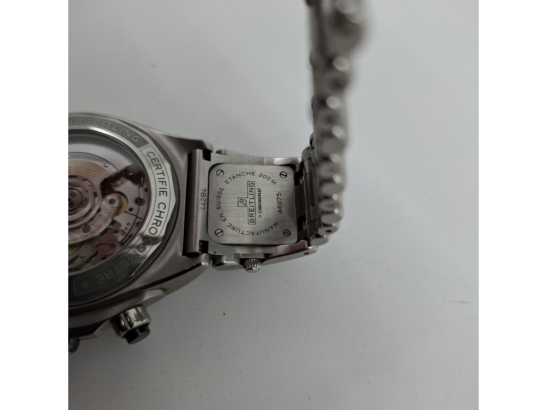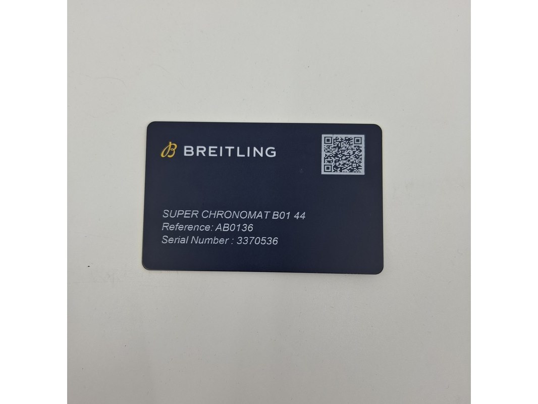 Merk: Breitling Product: Horloge Materiaal: Staal Specificaties: Merk: Breitling Model: Super Chronomat B01 44 Referentie: AB0136 Serienummer: 3370536 Opwinden: Automatisch Materiaal horlogekast: Staal Materiaal horlogeband: Staal Inbegrepen - Originele doos - Originele papieren - Extra schakels