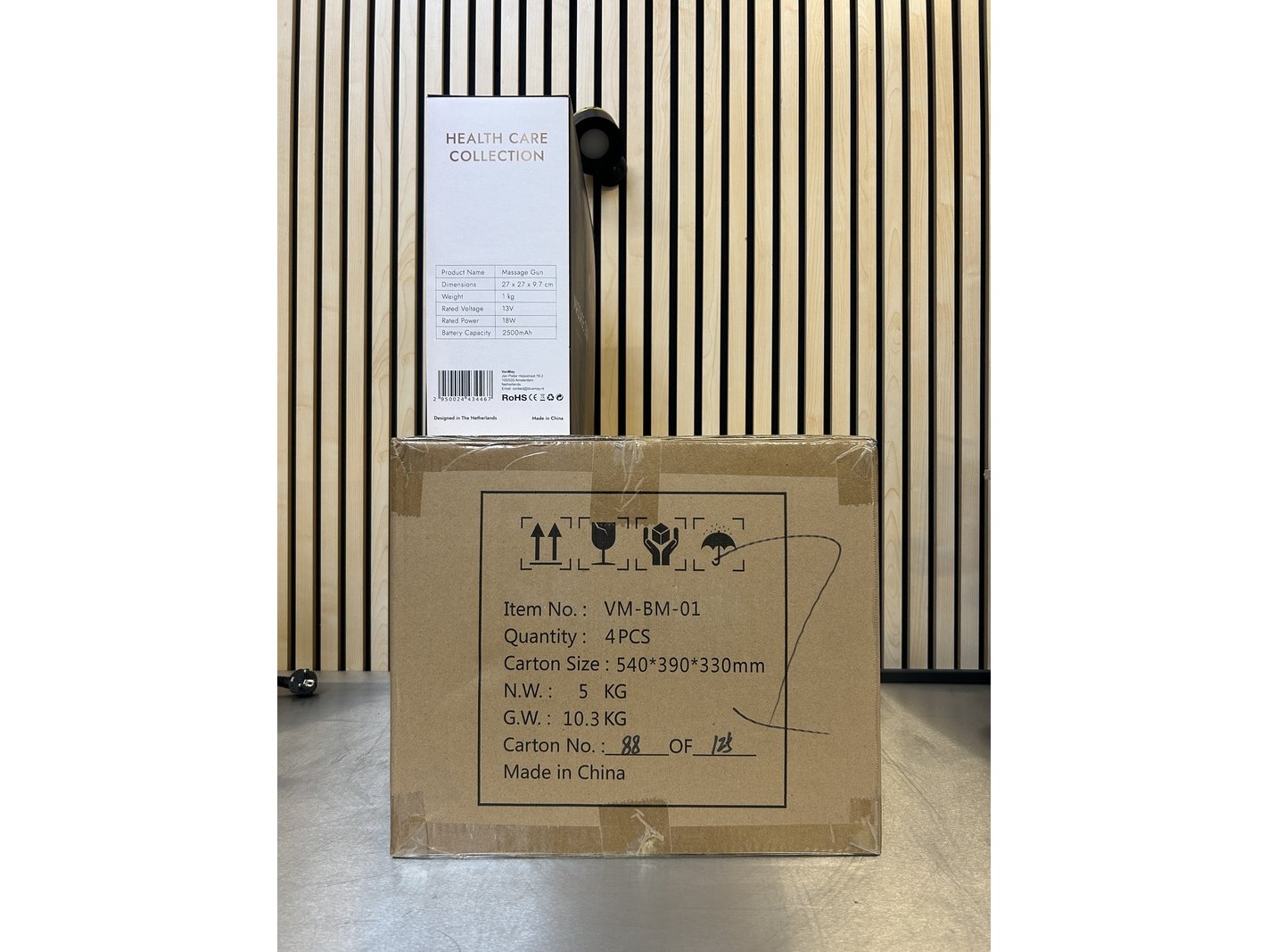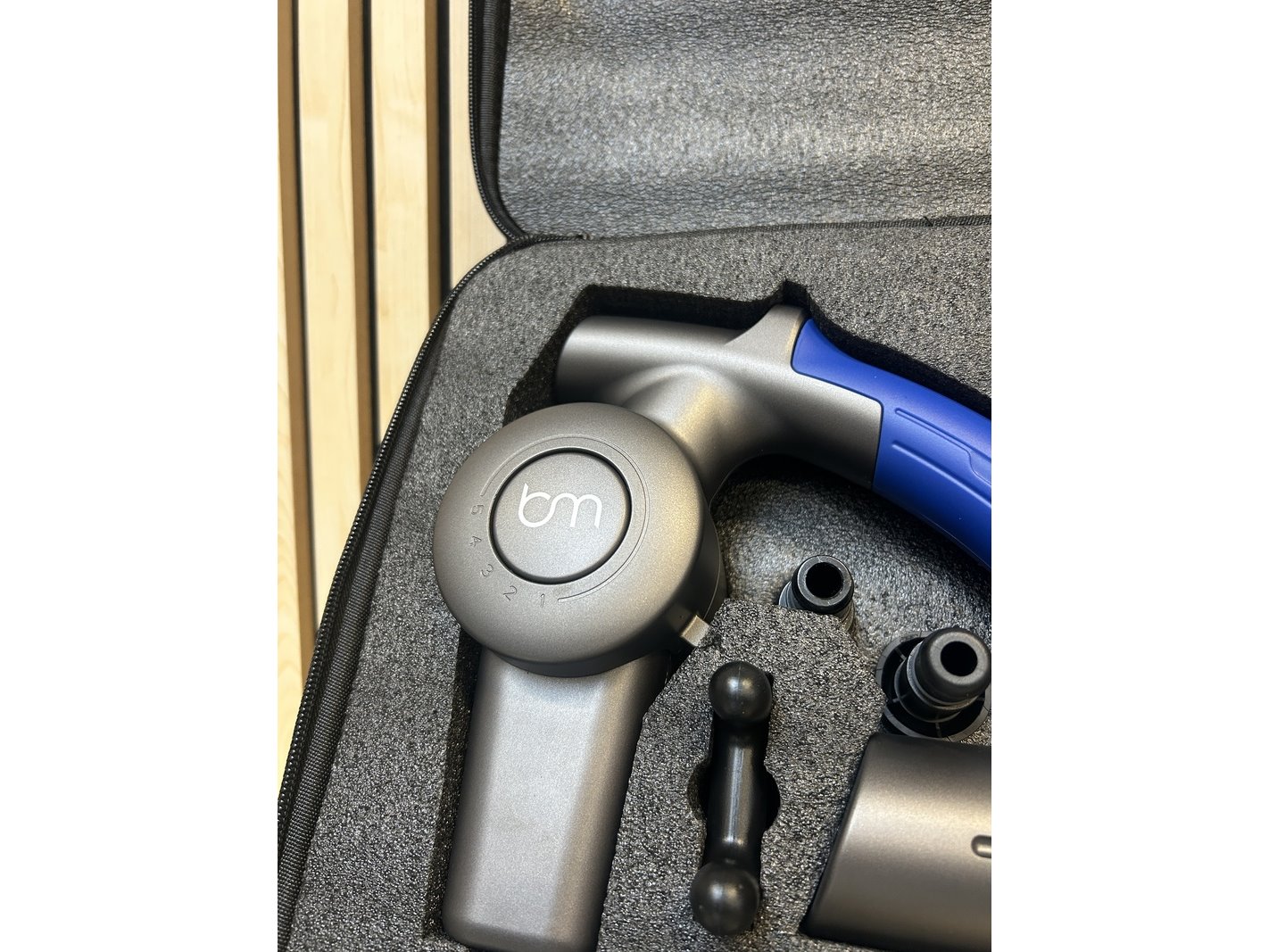 Merk: Bluemay Product: Premium massage gun in koffer met opzetstukken Conditie: nieuw