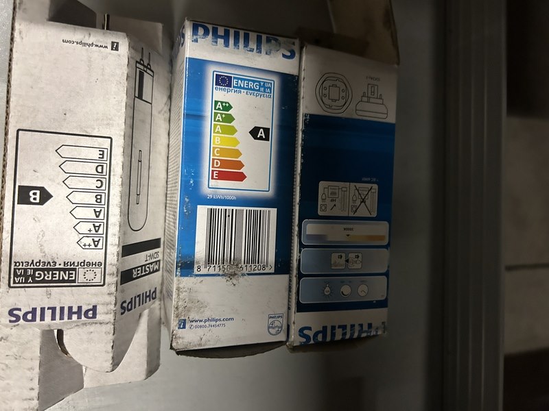 3x inhoud stellingvak diversen w.o. verlichting w.o. philips, siemens