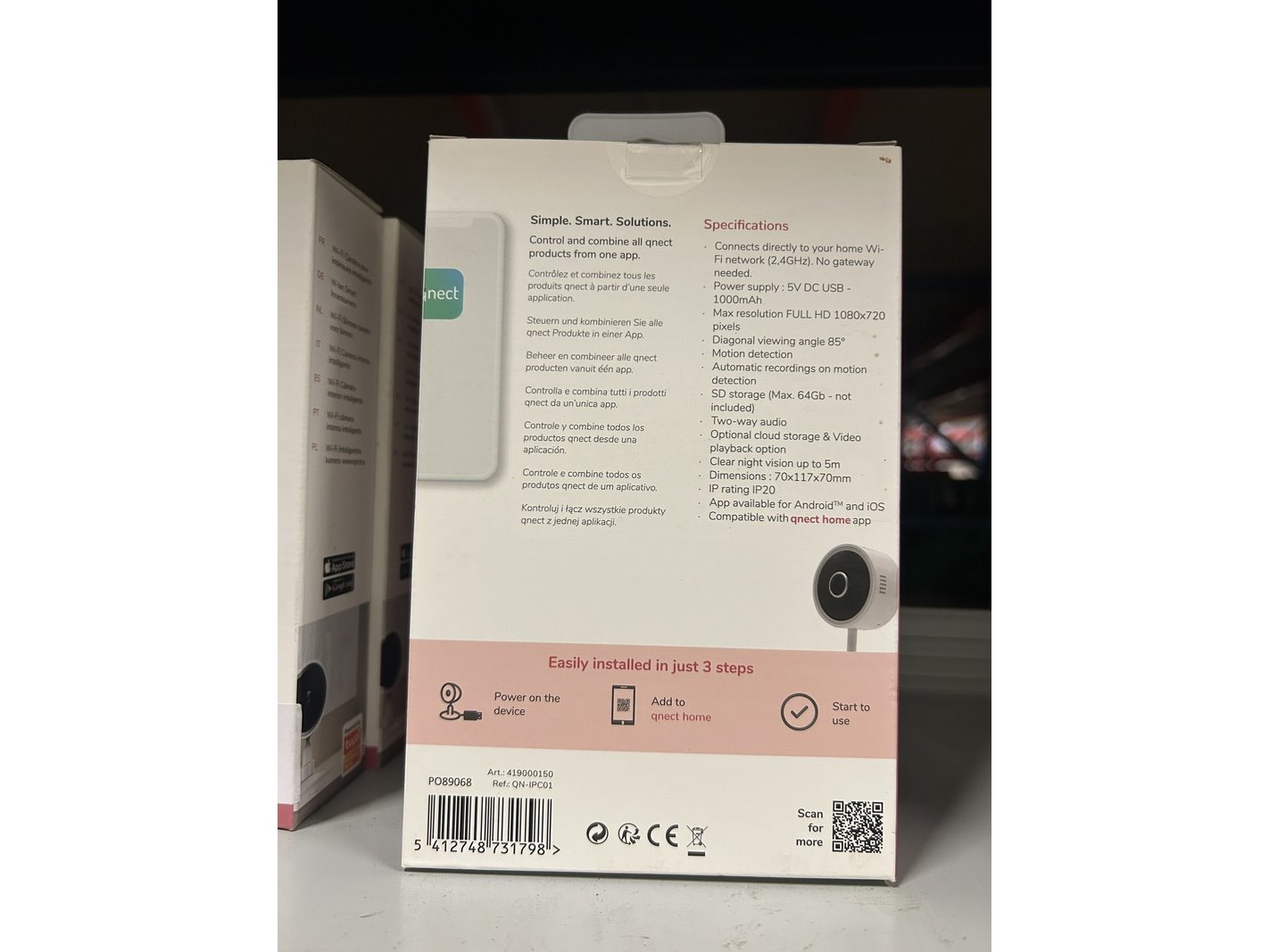 Merk: qnect Product: Wi-Fi smart indoor camera Specificaties: Demo modellen en gebruikt. De kavel bevat retouren. De werking en volledigheid van de items in deze kavel zijn onbekend.