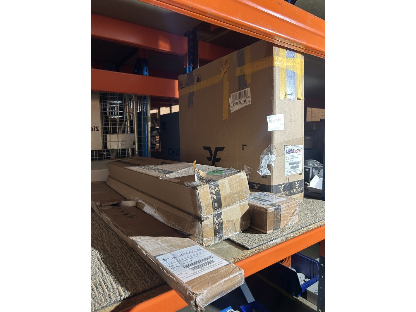 5x diverse (online) winkelvoorraad w.o. timbertech, infantastic