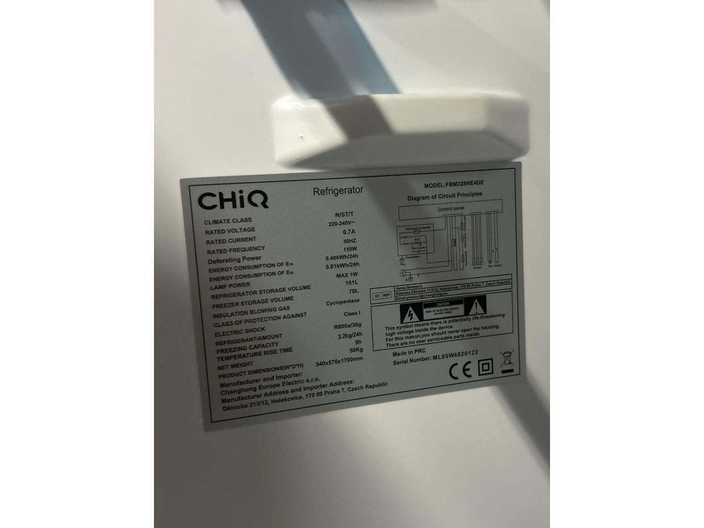 Merk: CHiQ Product: Koel-vriescombinatie 231 liter Afmeting: lxbxh 545x576x1700 mm Conditie: nieuw