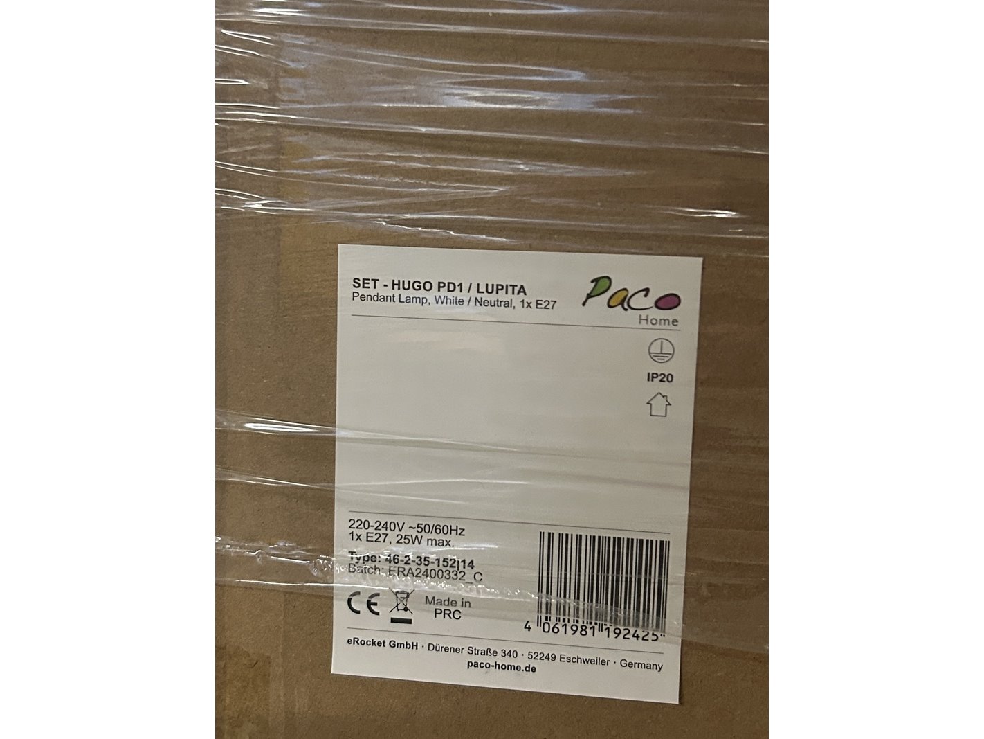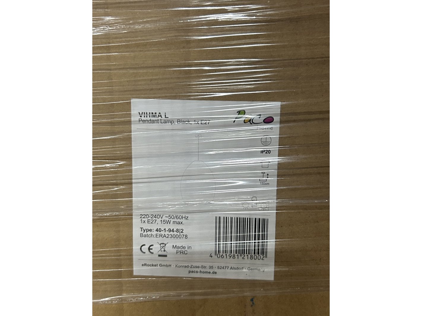 Product: Design verlichting Paco Home Specificaties: Pallet met design verlichting van Paco Home, rechtstreeks afkomstig uit het fulfilment center. De dozen zijn ongeopend en niet gesorteerd. De inhoud kan bestaan uit nieuwe producten, demo artikelen of items met beschadigingen of ontbrekende onderdelen. Soms gaat het alleen om een beschadigde verpakking, maar het kan ook voorkomen dat het product zelf beschadigd of incompleet is.